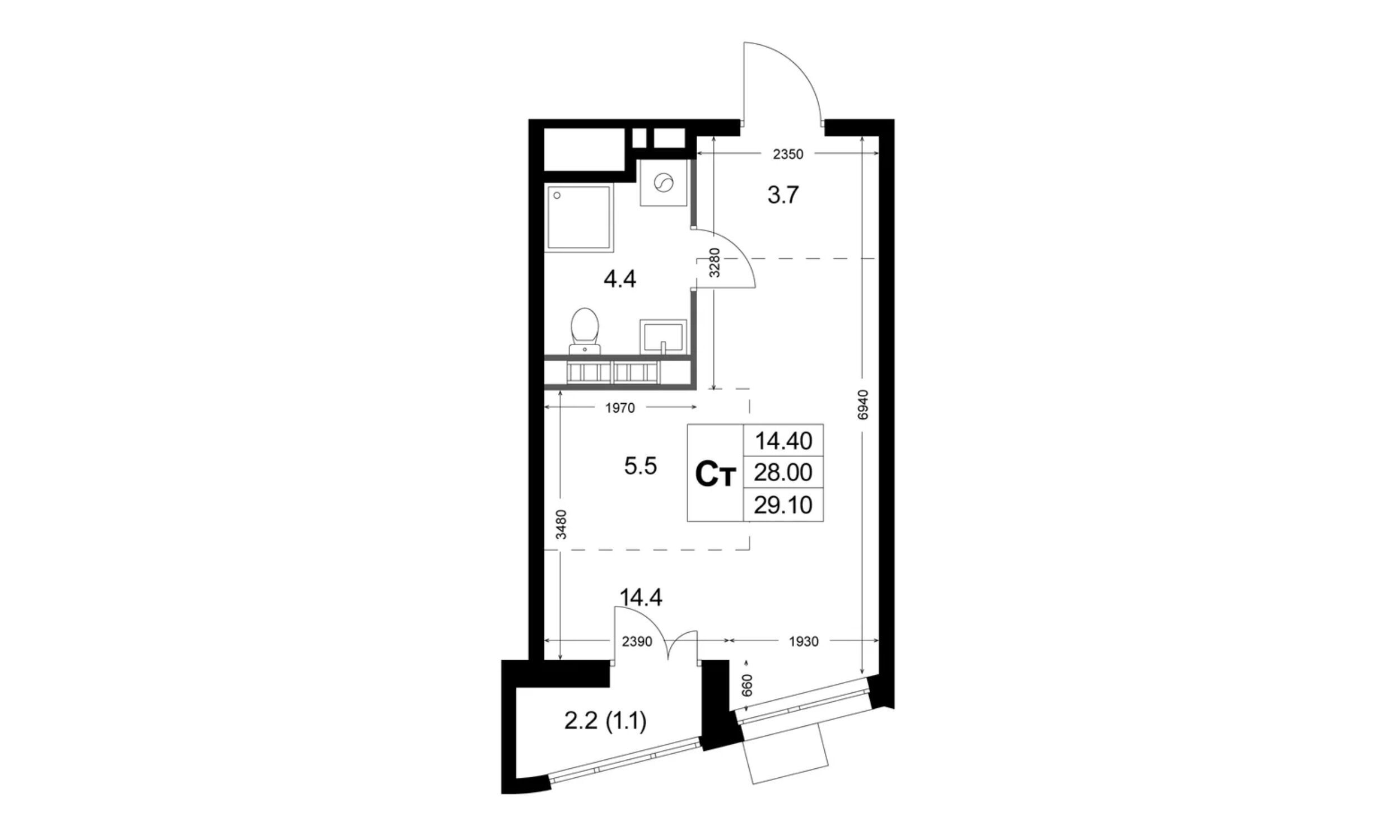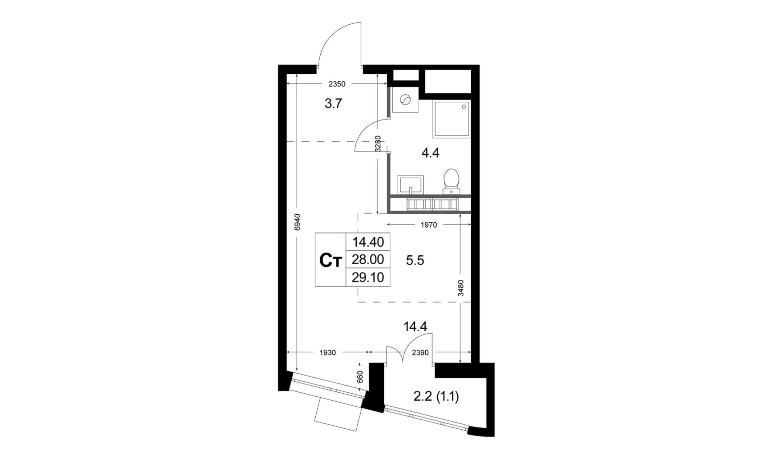 Студия, 29.10 м²