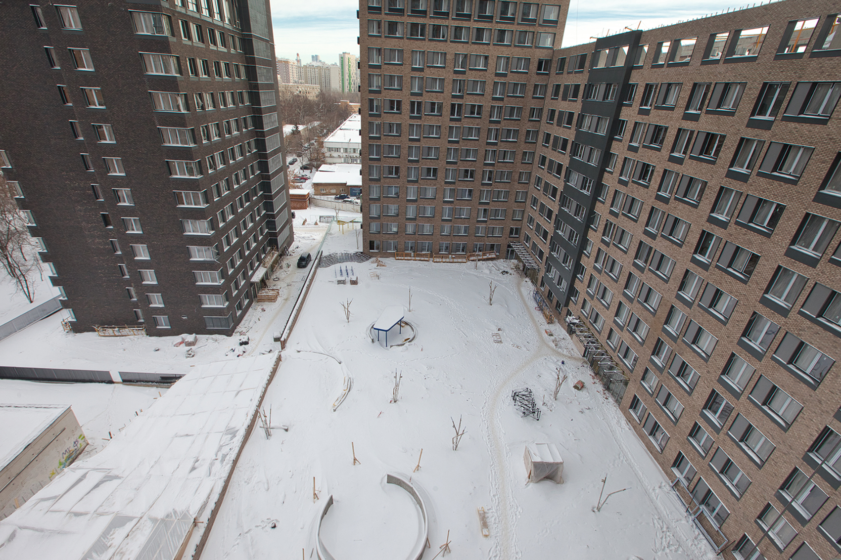 Архитектура: 4 монолитных корпуса, возвышающиеся на 9-29 этажах, создают внушительный облик жилого квартала.