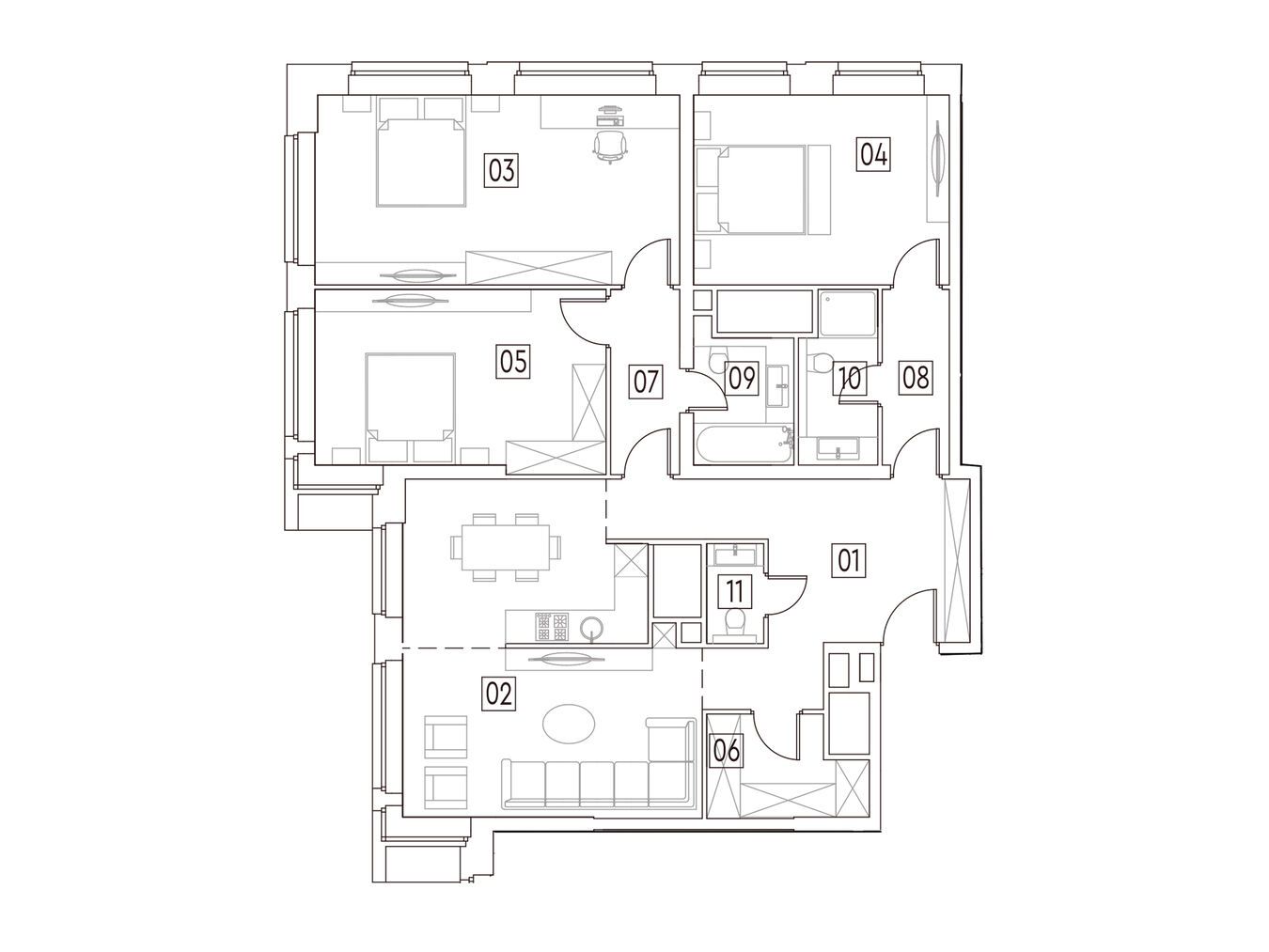 Апартаменты поставляются без отделки и планировки, предоставляя владельцам возможность воплотить свои идеи и создать уютное пространство в соответствии с их вкусом и стилем.