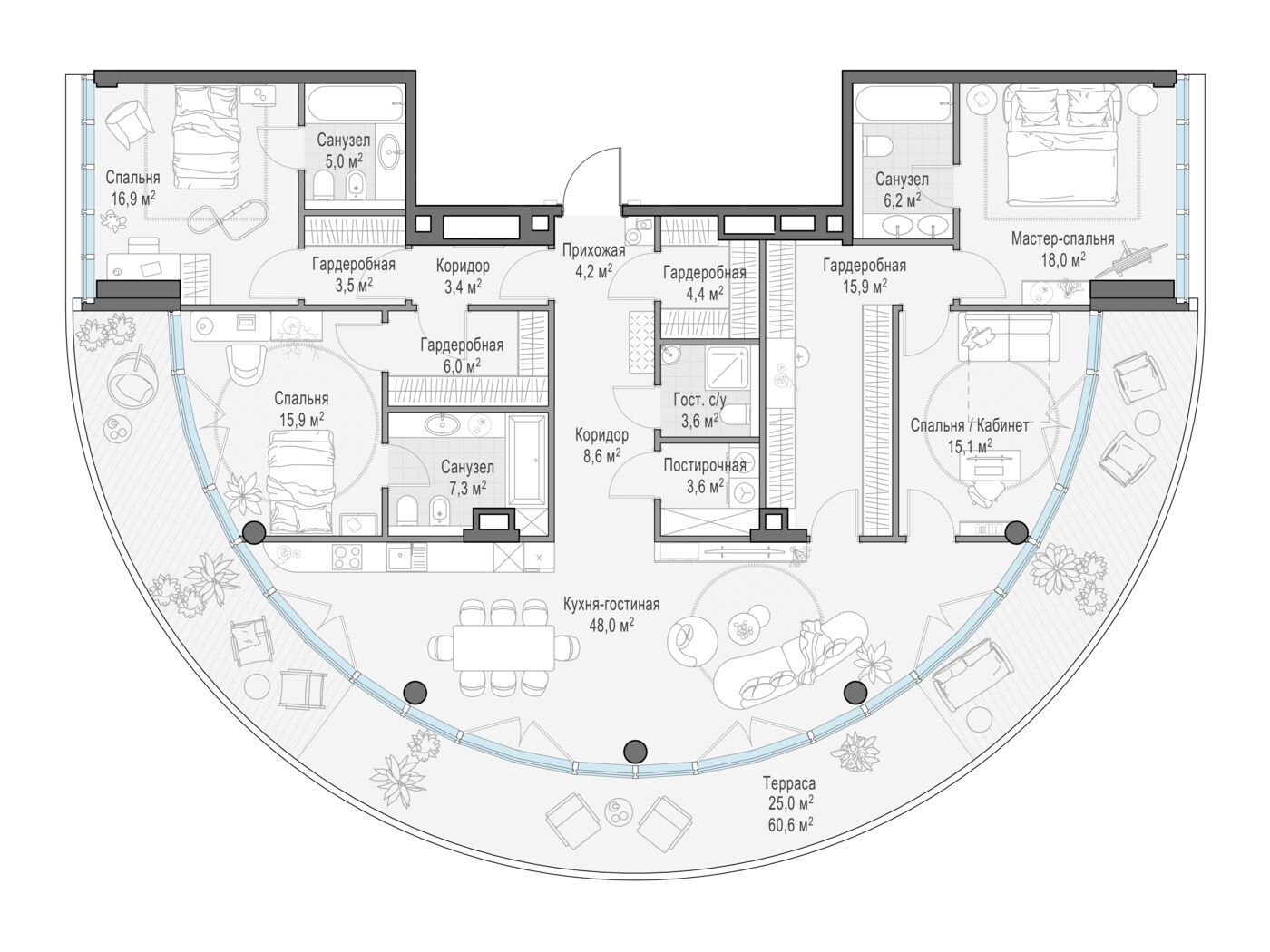 «Фрунзенская набережная» — это единый ансамбль из трёх элегантных архитектурных образов, воплощённых в домах разной этажности.