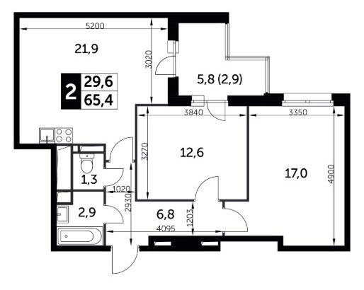 57.8 - 65.4 м²