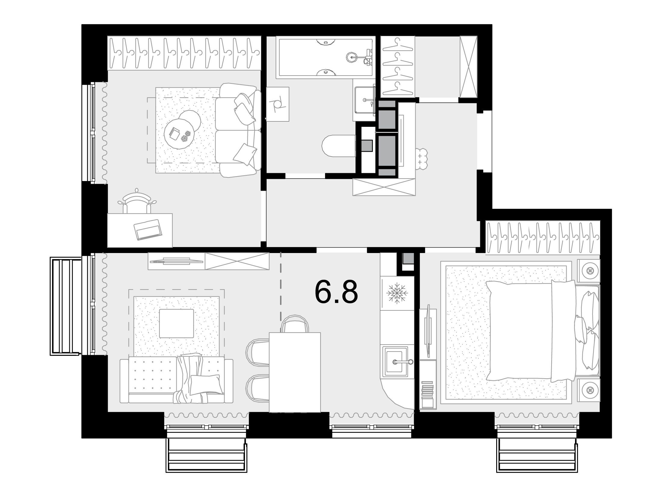 Квартиры «Новой Звезды II» выполнены в стиле евроформата, предлагая планировки с 1-2 спальнями. Большие окна наполняют помещения светом, а потолки высотой 2.85-3 м создают ощущение простора и свободы. В каждой квартире предусмотрены гардеробные комнаты или уютные ниши под встроенные шкафы, что обеспечивает оптимальный комфорт для хранения одежды и личных вещей.