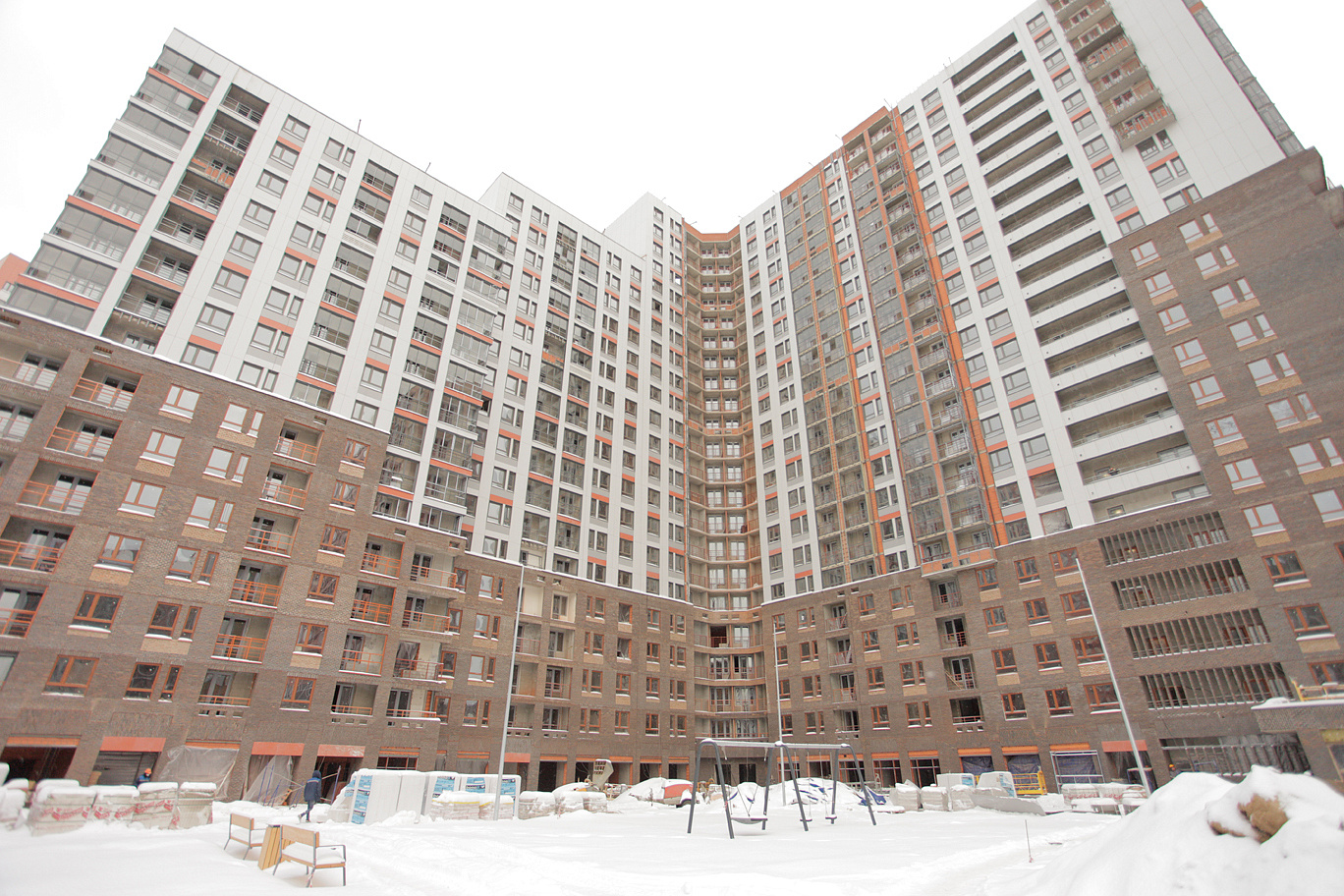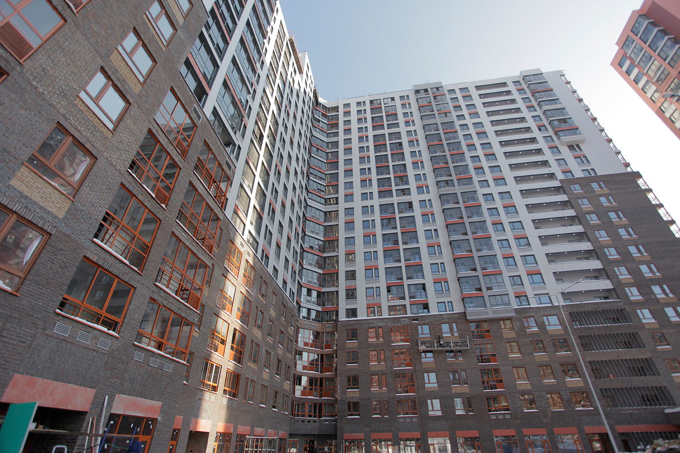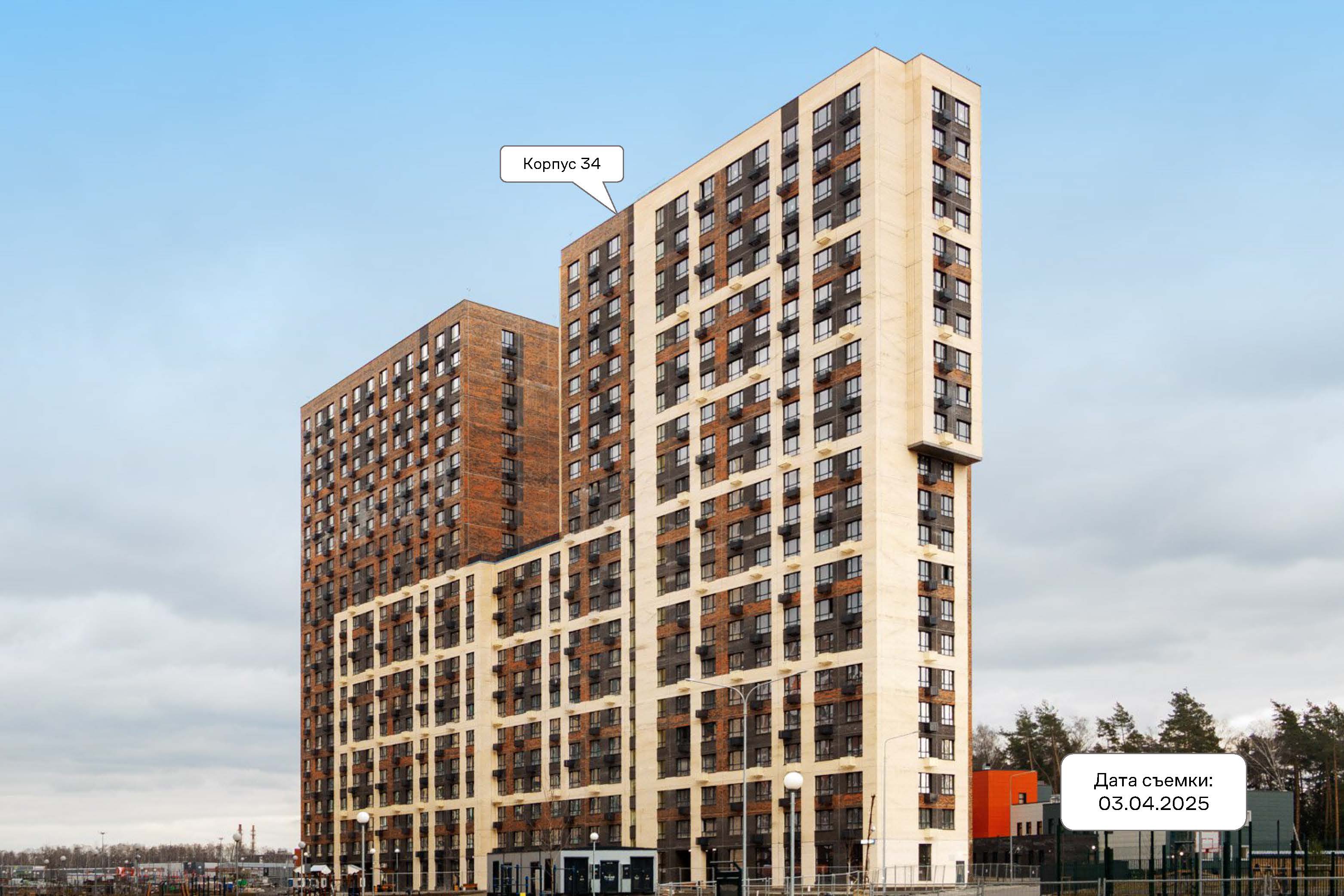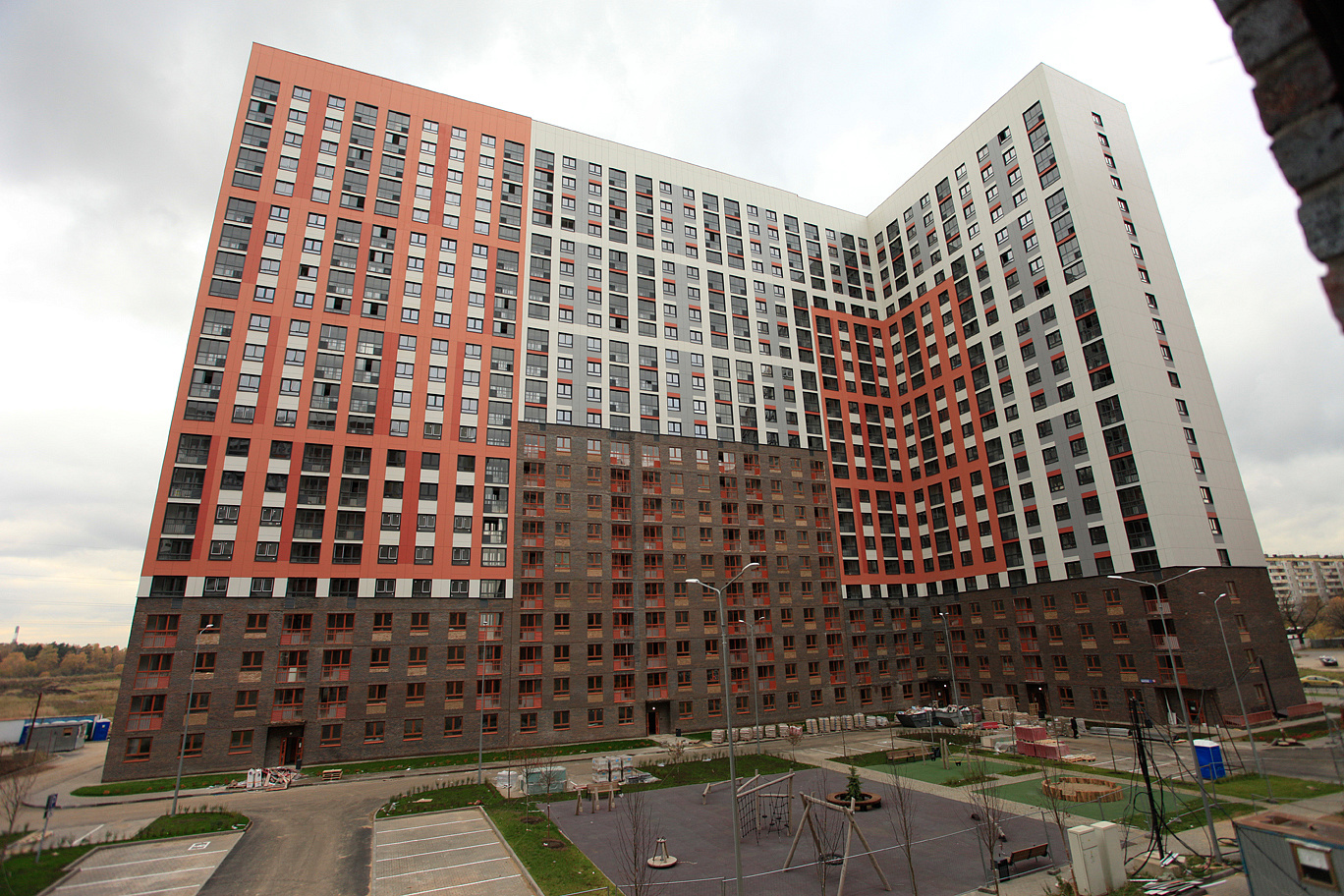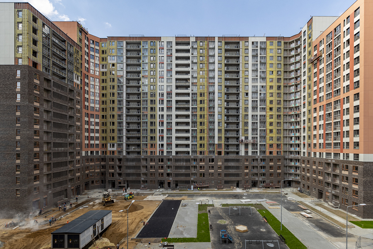 Комплекс строится в современном стиле: простые формы, поквартальная застройка, отделка фасадов выполнена кирпичом и декоративной штукатуркой в природных цветах.