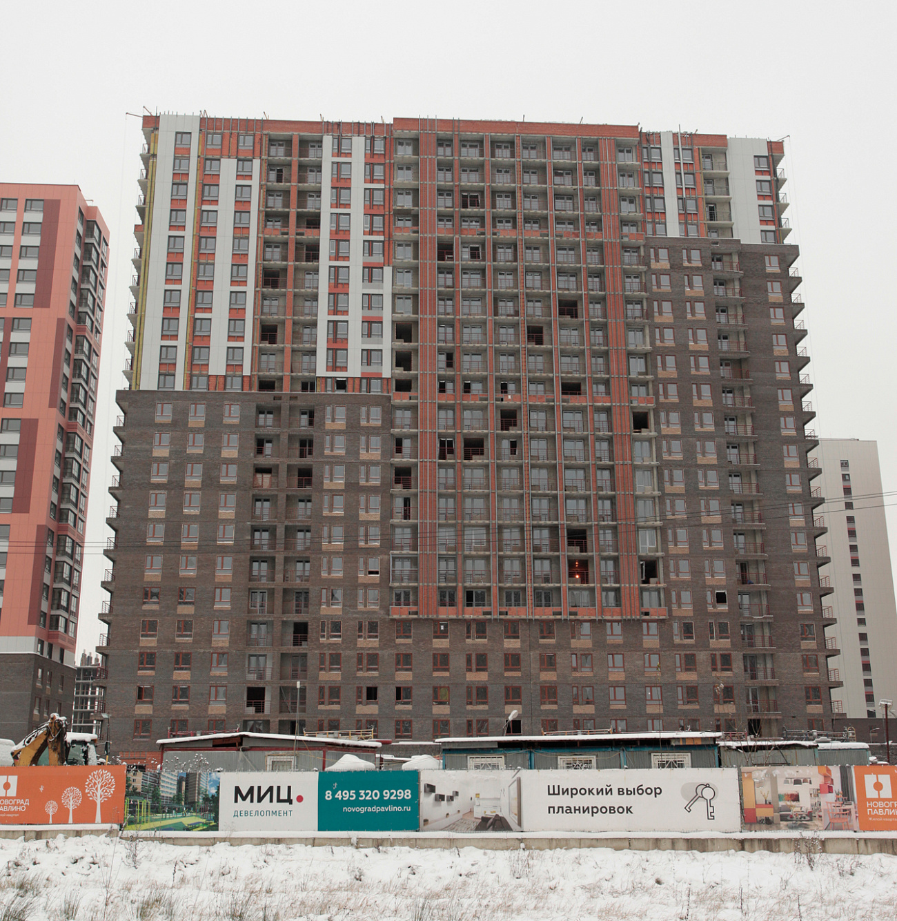 Строительство ЖК «Новоград Павлино» было начато почти 10 лет назад компанией «МИЦ», которая в 2023 году вошла в состав ГК «Самолет». Масштабный комплекс включает в себя несколько кварталов — более двух десятков готовых монолитных корпусов высотой до 22 этажей. Ещё один корпус будет сдан до конца 2024 года и 3 корпуса — в 2025 году.