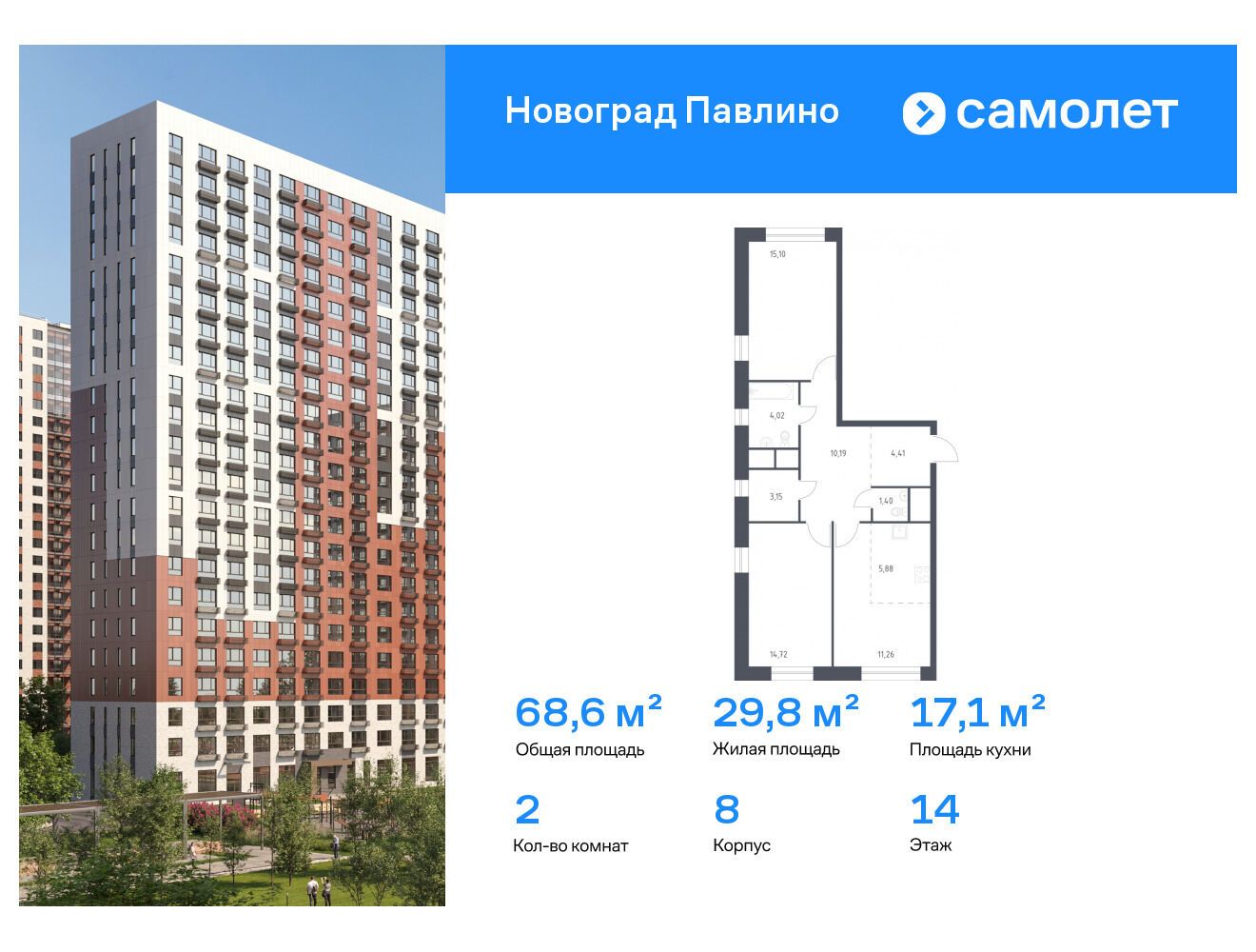 302 квартиры от застройщика Новоград Павлино