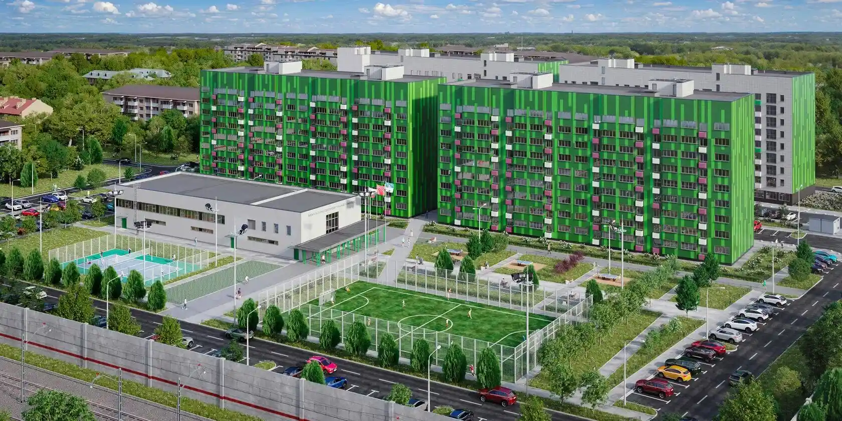 Просмотрела проект на сайте и поняла что застройщик использует качественные материалы, можно не боятся что в квартире будет трещина со временем. Доступая цена для большинства жителей, и поэтому мы купила двухкомнатную квартиру. Во дворе есть детские площадки, яркие и прочные, детям нравится, постоянный крик во дворе. Сам жилой комплекс небольшой, и поэтому места на парковке хвататет всем.