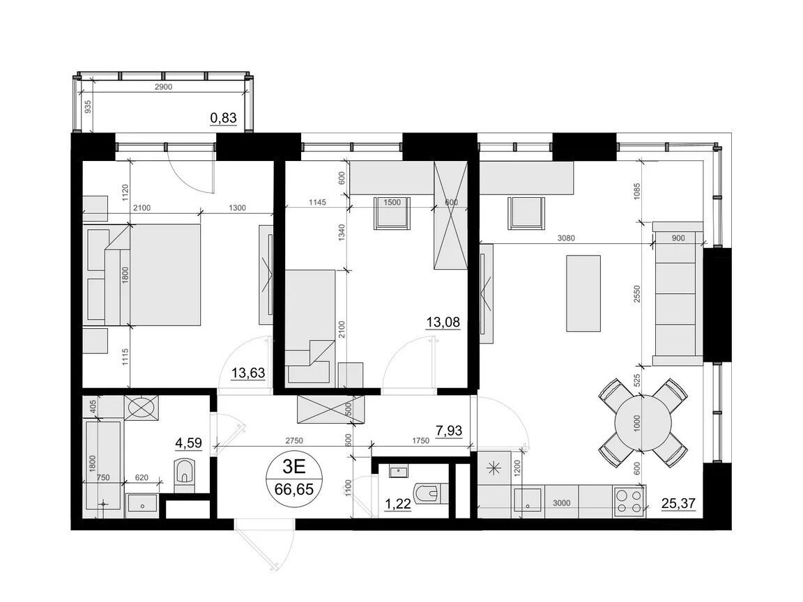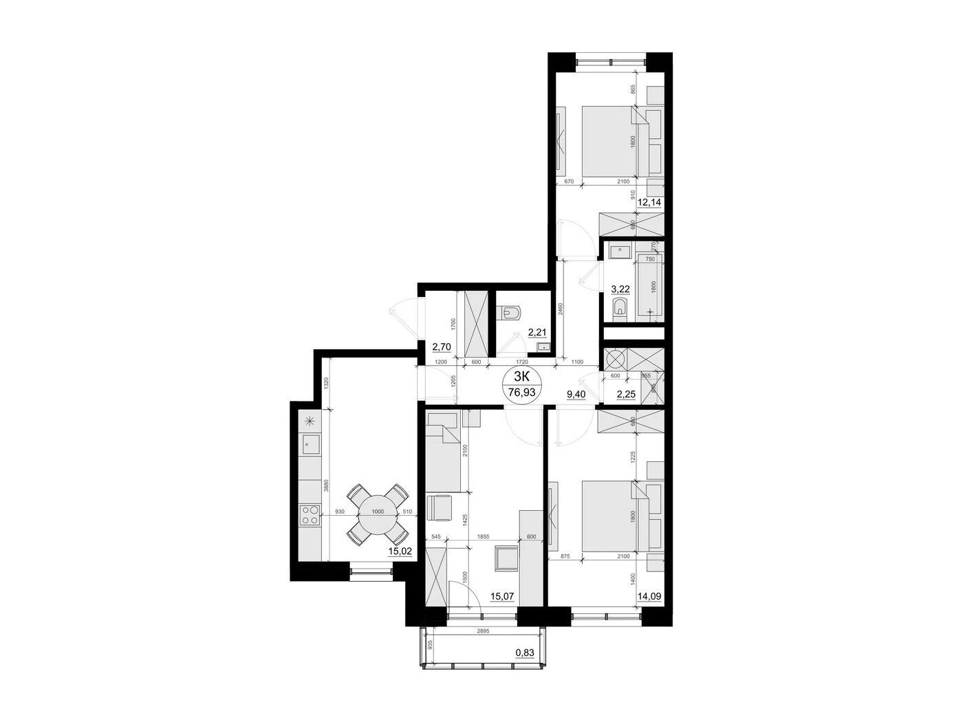 28.84 - 76.93 м²
