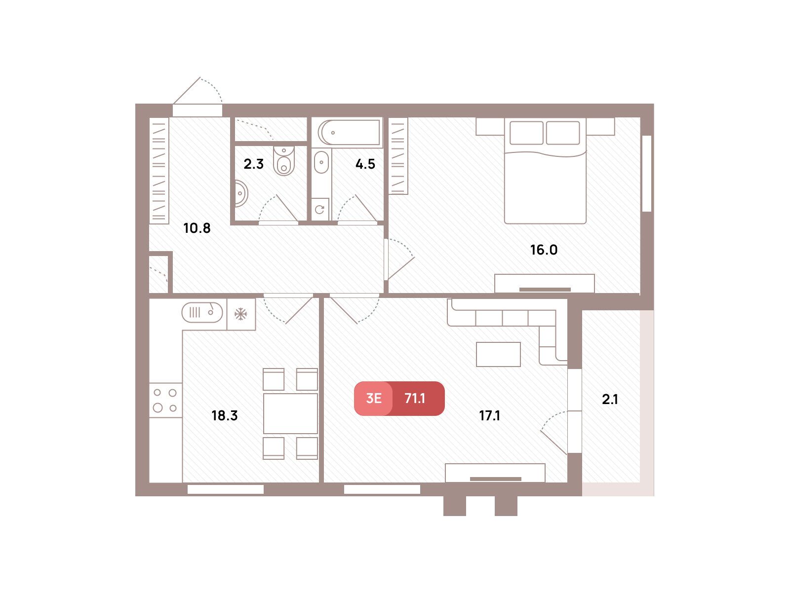 43.1 - 117.9 м²