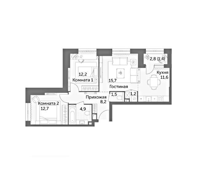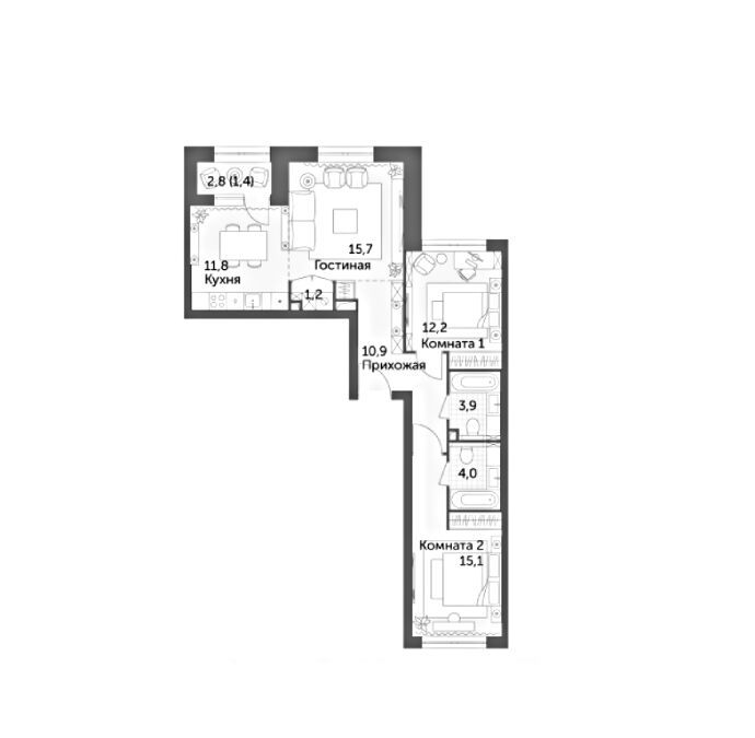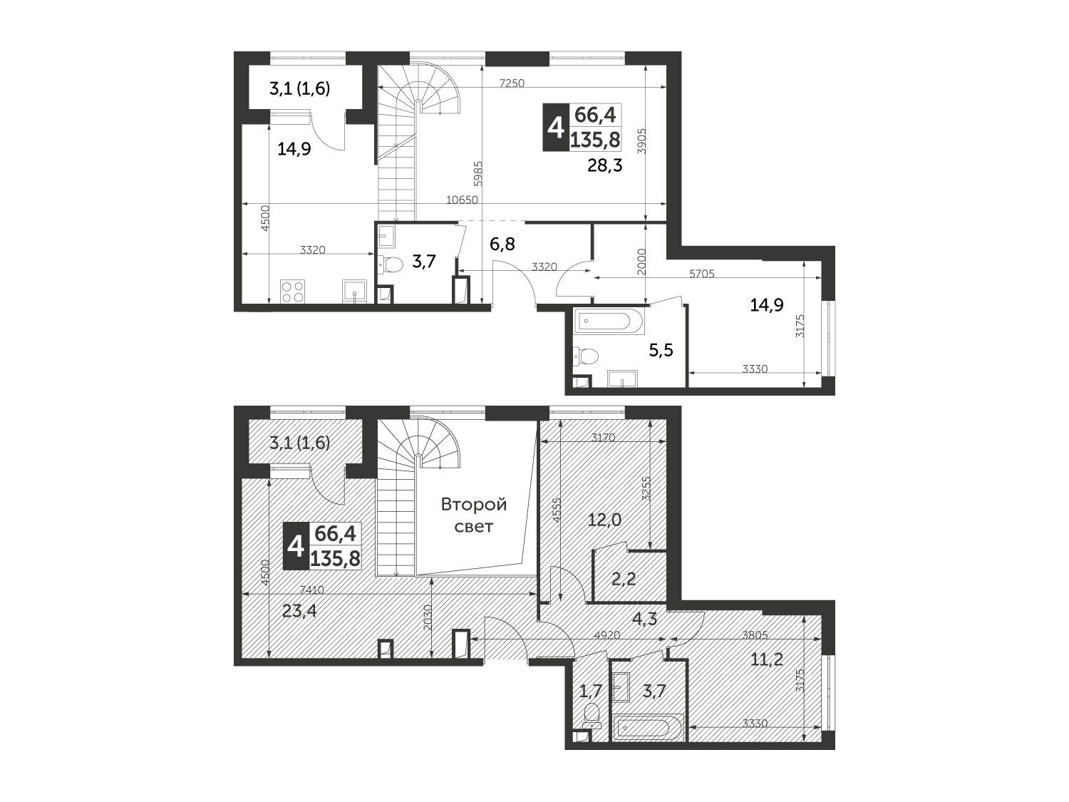 Также имеются двухуровневые пентхаусы, расположенные на верхних этажах комплекса. С панорамным остеклением, они предлагают потрясающий вид на окружающую местность и создают атмосферу полного отрыва от будничной суеты.