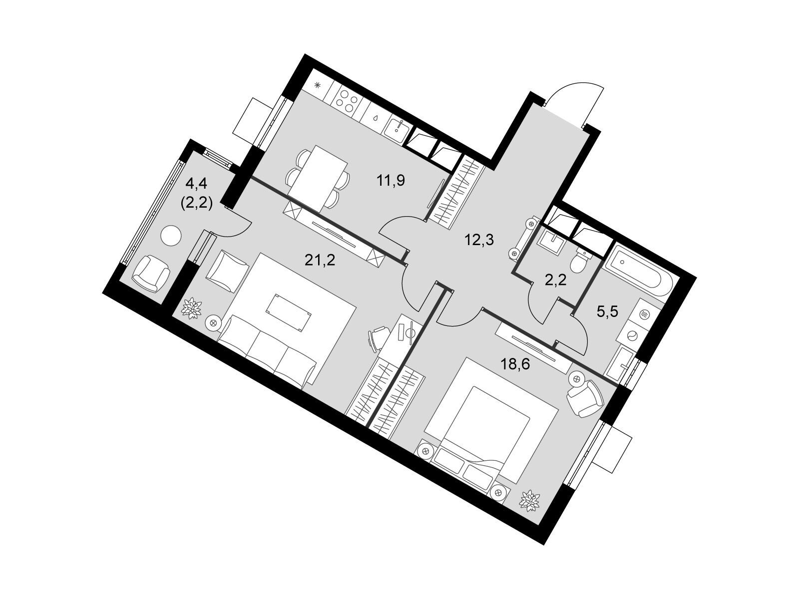 Купить квартиру в ЖК «Римский» можно без отделки, с предчистовой или чистовой отделкой. Стоимость недвижимости в проекте — от 7,4 до 27,3 кв. метров (цены актуальны на конец ноября 2024 года).
