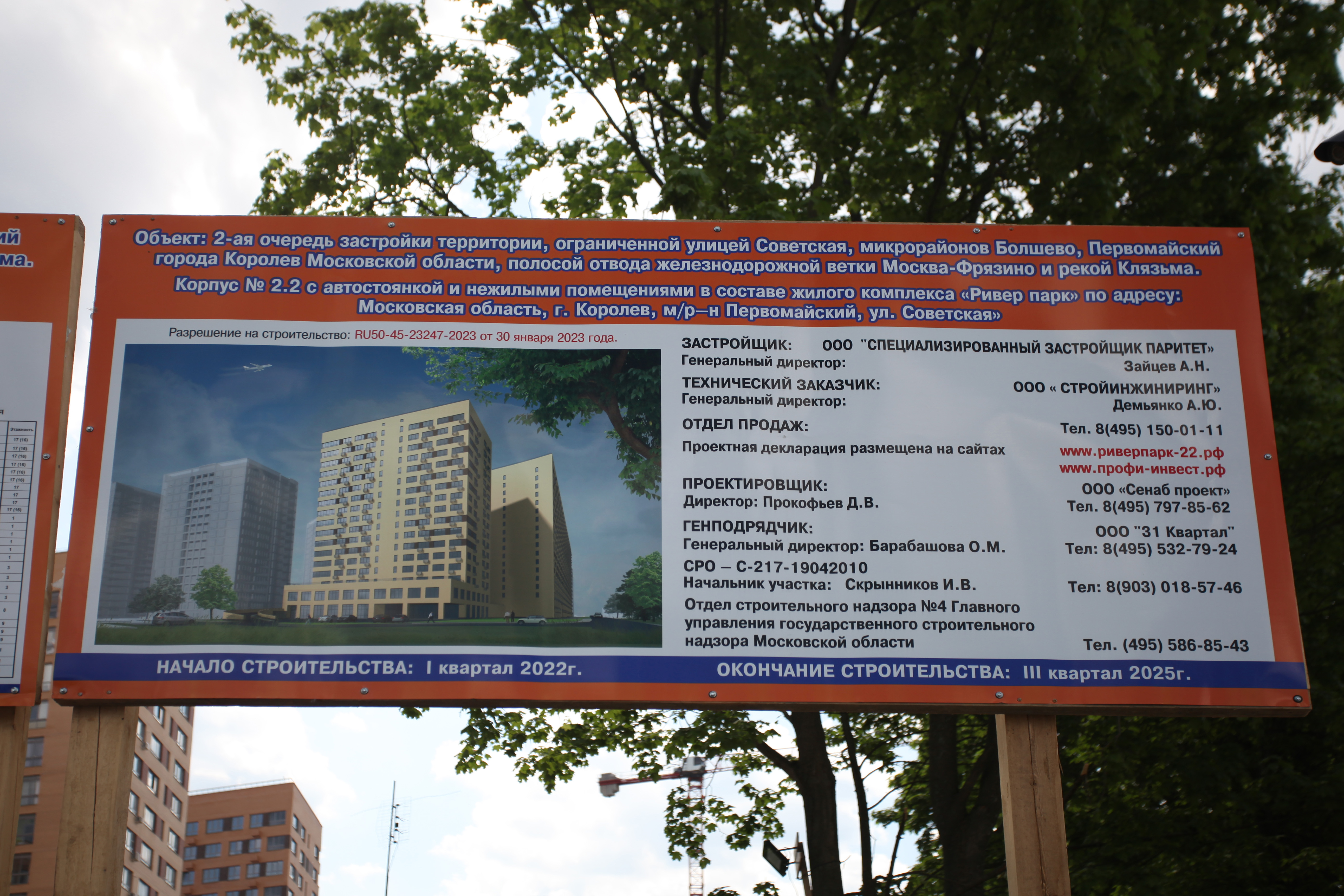 Жилой комплекс «Ривер парк» (Королев) расположен в городе Королев на берегу живописной реки Клязьма. Этот современный жилой комплекс состоит из двух 17-этажных секций - А и Б, в которых располагается общая 278 квартир. Сдача жилья запланирована на III квартал 2025 года.