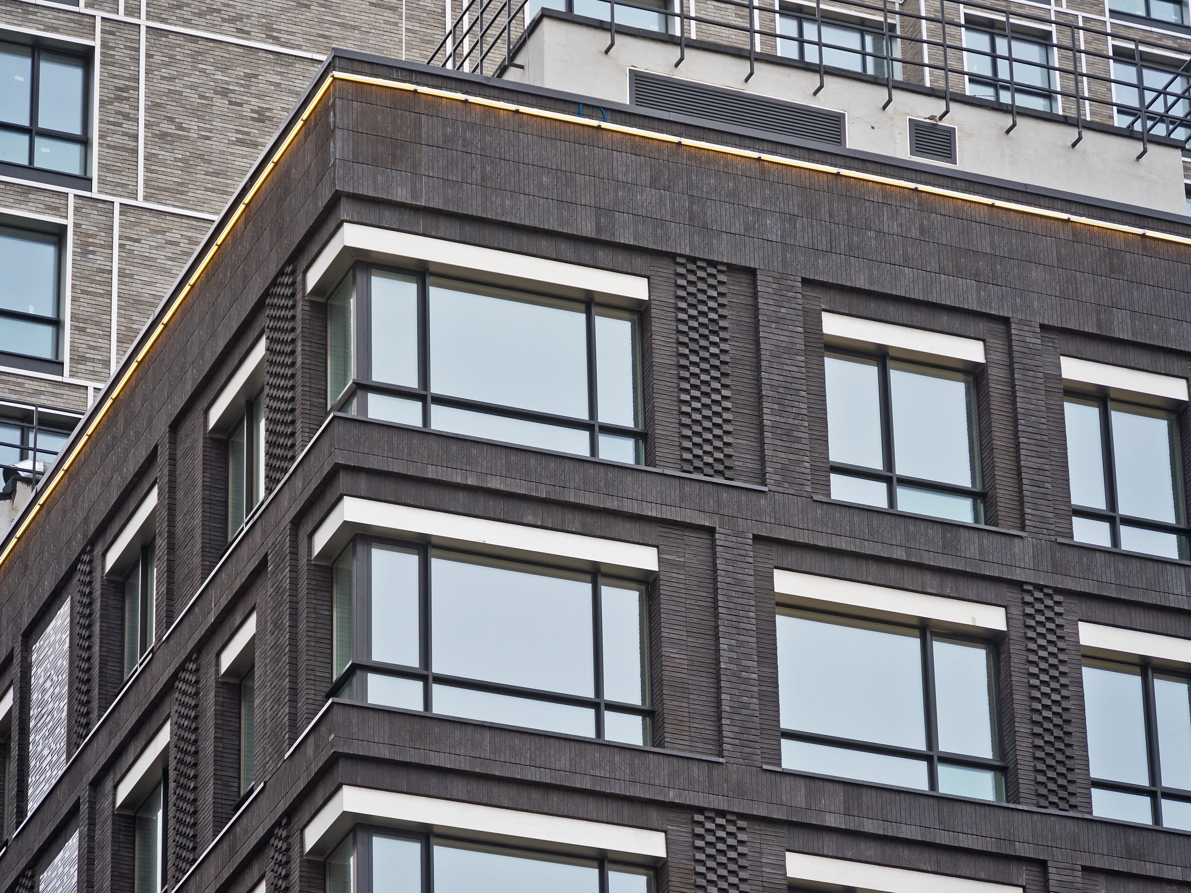 В каждой секции есть лобби с высокими потолками и дизайнерской отделкой. В интерьере применяются натуральные материалы природных оттенков. Особую атмосферу, в которой жители могут почувствовать спокойствие и безопасность, создает циркадное освещение.