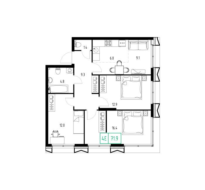 В ЖК «SKOLKOVO ONE» представлены различные варианты жилья, начиная от студий площадью от 33 квадратных метров, до просторных трехкомнатных апартаментов с дополнительными санузлами. Высота потолков составляет 3 метра, а максимальная площадь апартаментов достигает 150 квадратных метров.