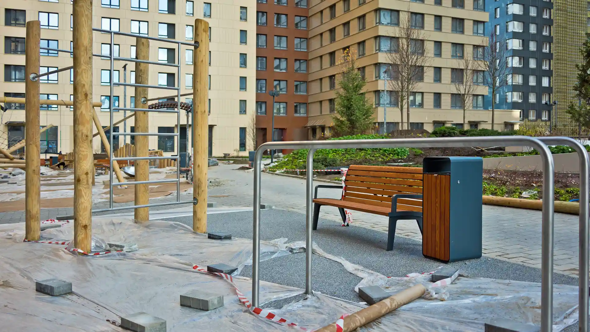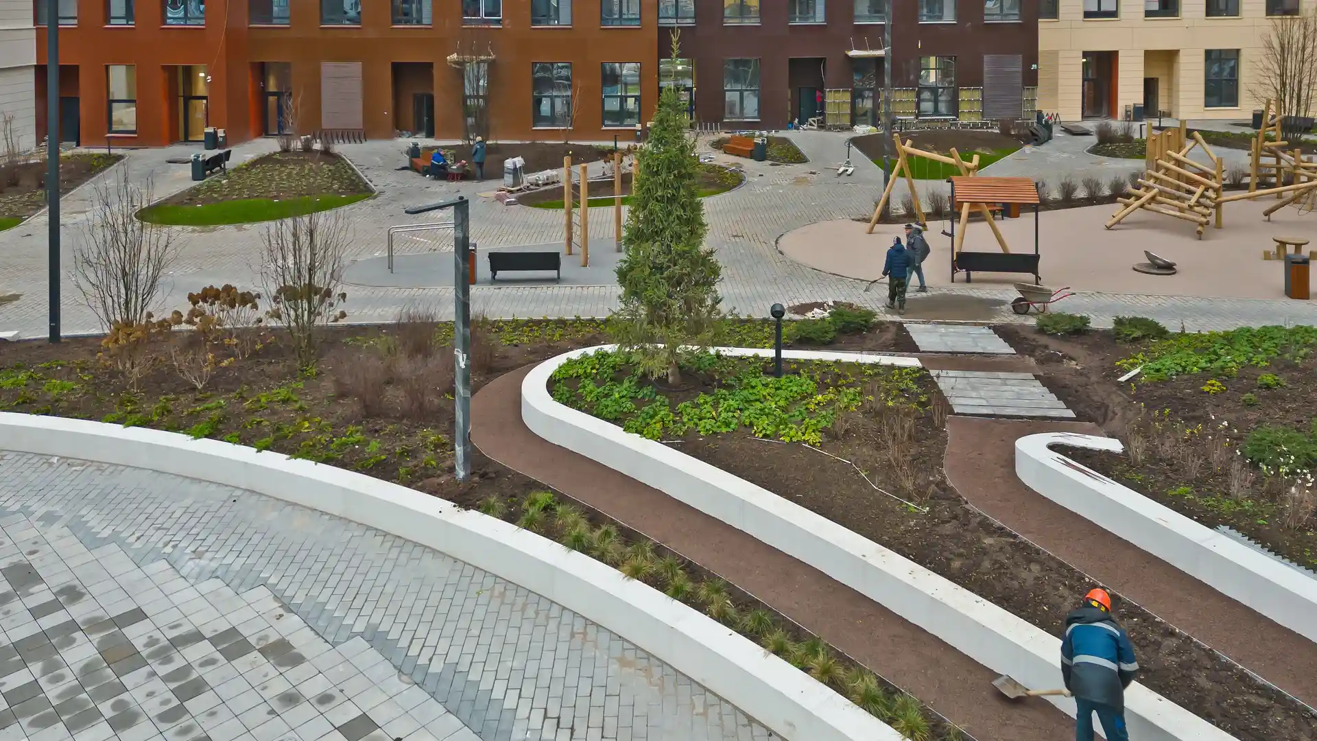 Внутри квартала будет разбит двор-парк с пешеходными дорожками, детскими игровыми городками и местами для спокойного отдыха. В центре двора появится событийная площадь, пруд и фонтан. Также на территории предусмотрены бульвар с липами и перголами, поляна для йоги, ворк-аут и велодорожки. Кроме того, в планах застройщика обустроить набережную реки Сходни с северной стороны комплекса.