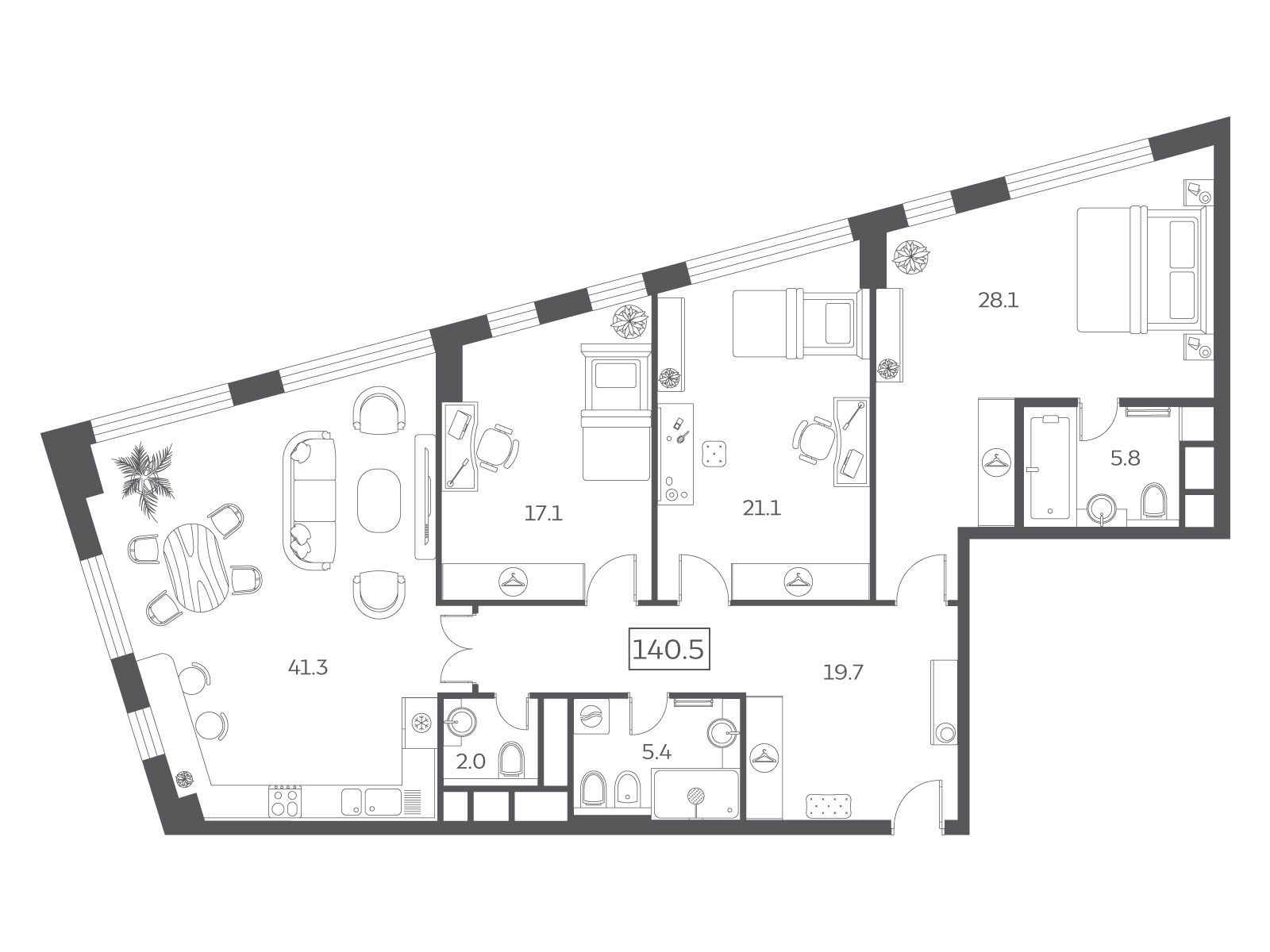 140.5 - 155.6 м²