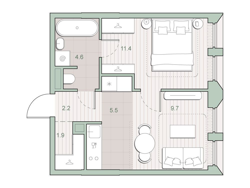 В ЖК «Среда на Лобачевского» запроектированы разнообразные планировки: здесь можно купить как функциональную студию площадью 22 кв. м, так и квартиру «семейного» формата с тремя спальнями, разнесенными на две стороны от просторной кухни-гостиной, большой гардеробной и двумя санузлами, общей площадью 95,7 кв. м. В проекте также есть редкие форматы: квартиры с окнами в ванной, угловым остеклением, французскими балконами, сквозными санузлами.