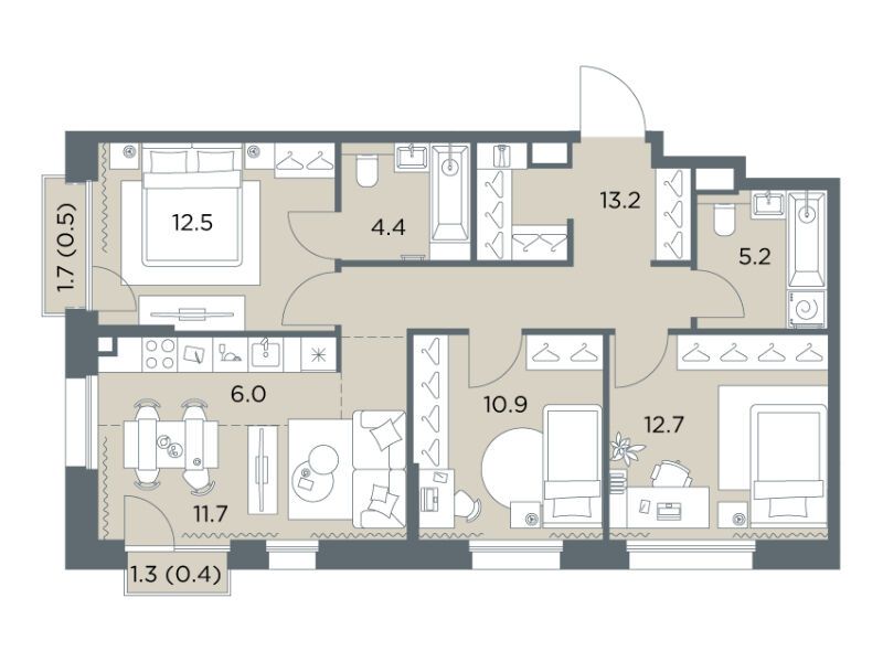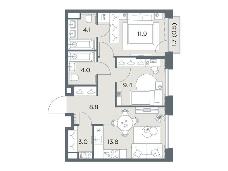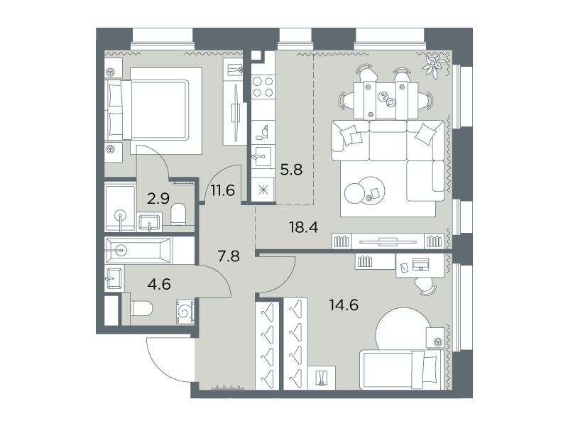 35.8 - 94.9 м²
