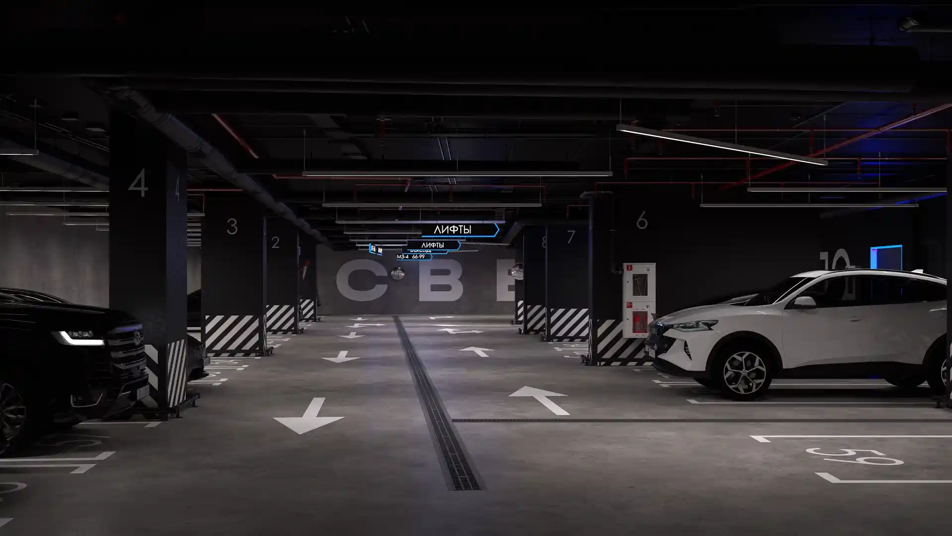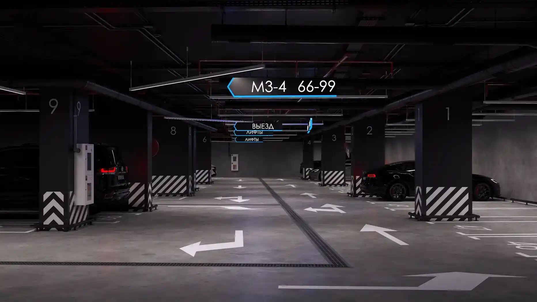 Безопасность и комфорт обеспечиваются комплексом современных решений: огороженный периметр, круглосуточное видеонаблюдение, пропускная система, противопожарная защита и круглосуточная охрана. Входные группы оформлены как стильные лобби с консьерж‑сервисом, а подземный паркинг на 99 машино‑мест дополнен гостевыми парковочными местами. В здании установлено шесть пассажирских и шесть грузовых лифтов.