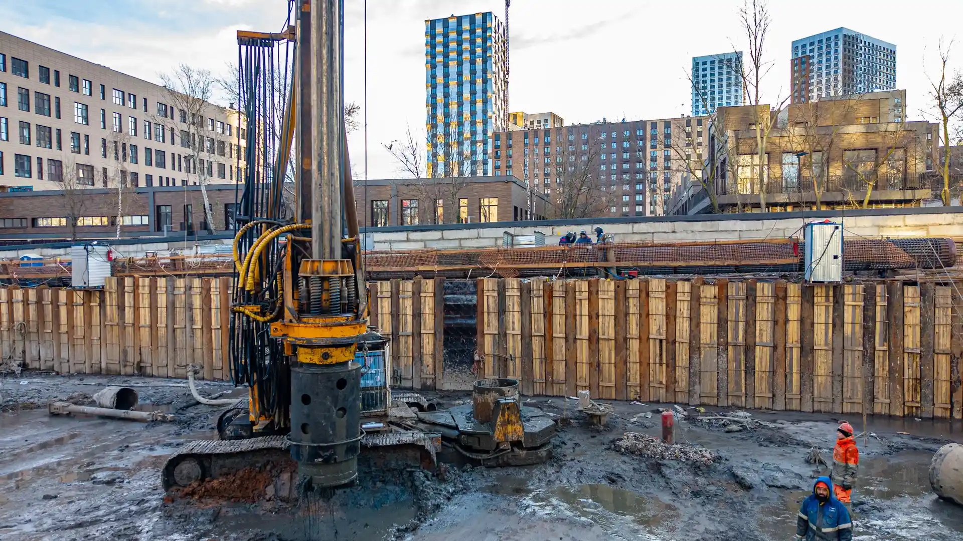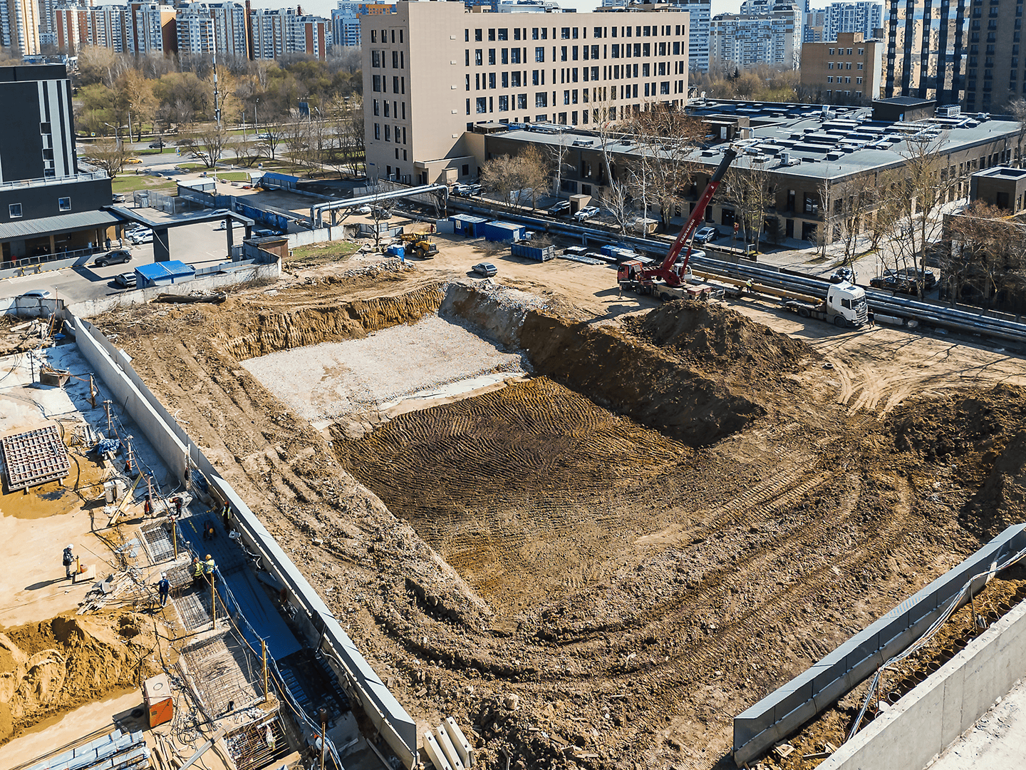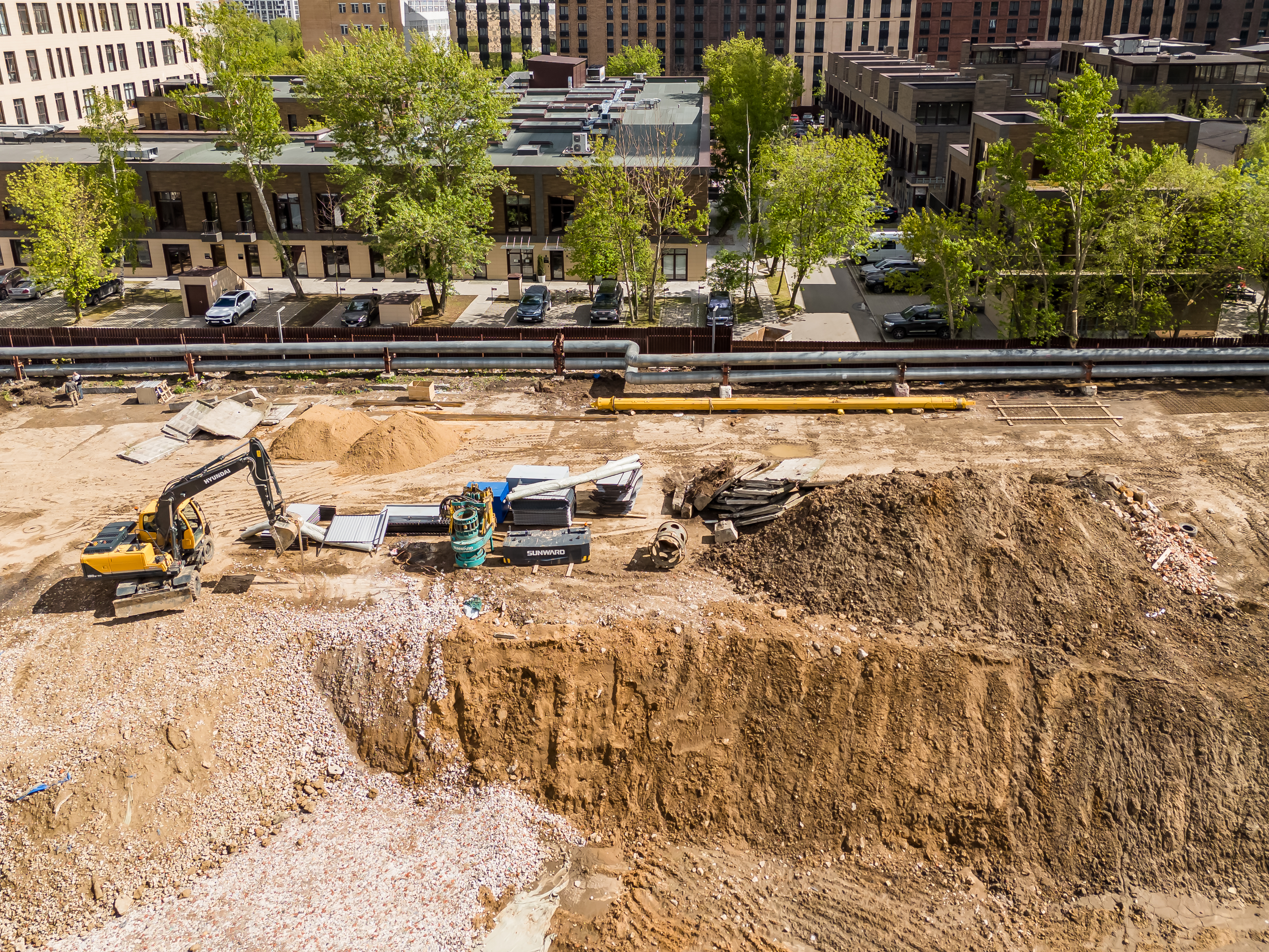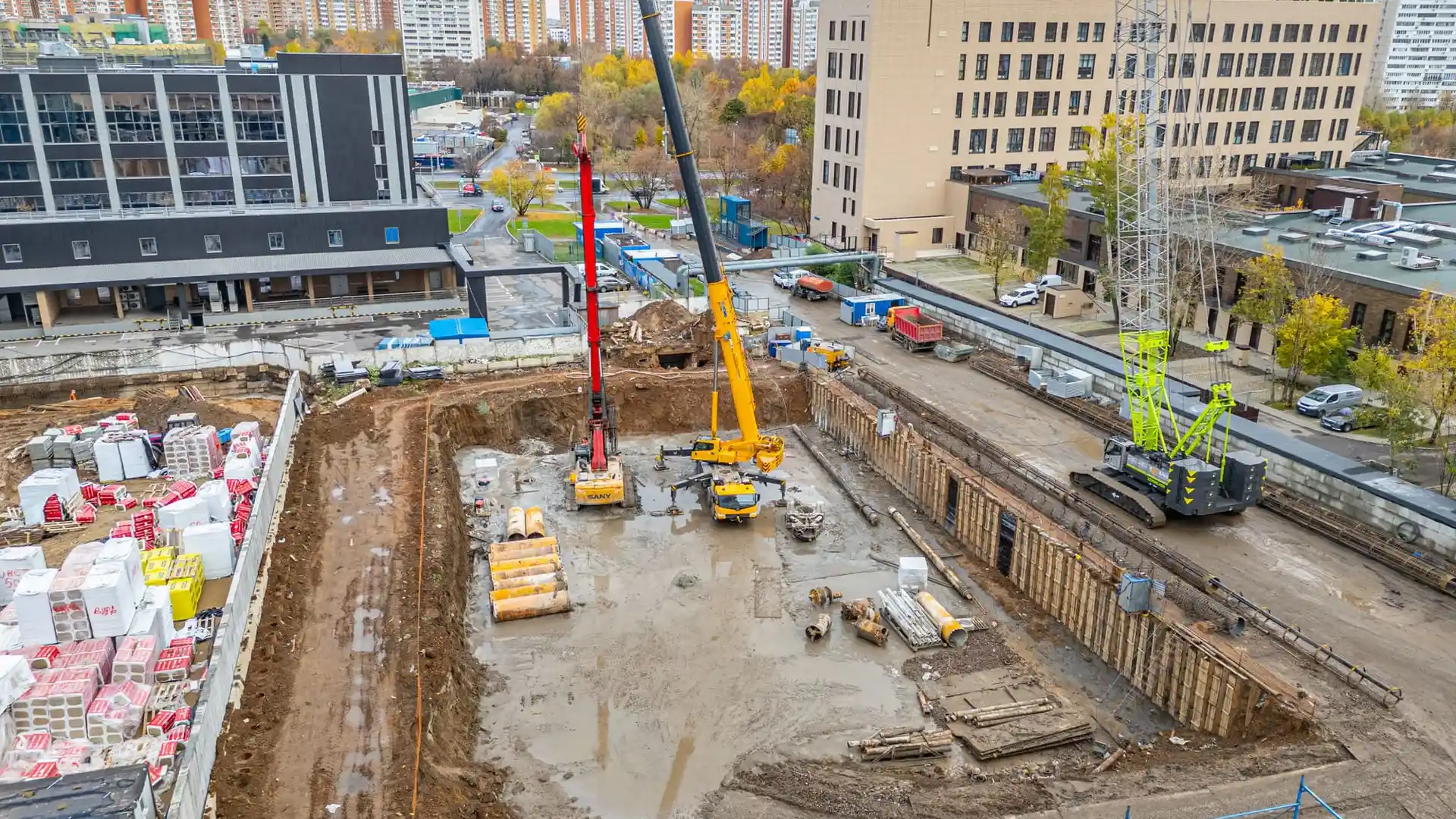 В стадии строительства находятся другие масштабные проекты. ЖК HideOut возводится в 3‑м Сетуньском проезде и представляет собой две башни высотой 34 и 49 этажей, объединённые мостом. Общая площадь комплекса — 51 500 м², предусмотрено 665 квартир от студий до четырёхкомнатных, включая двухуровневые лоты с патио и пентхаусы. На территории будет организован подземный паркинг на 557 машино‑мест, а ввод объекта в эксплуатацию запланирован на II квартал 2028 года.