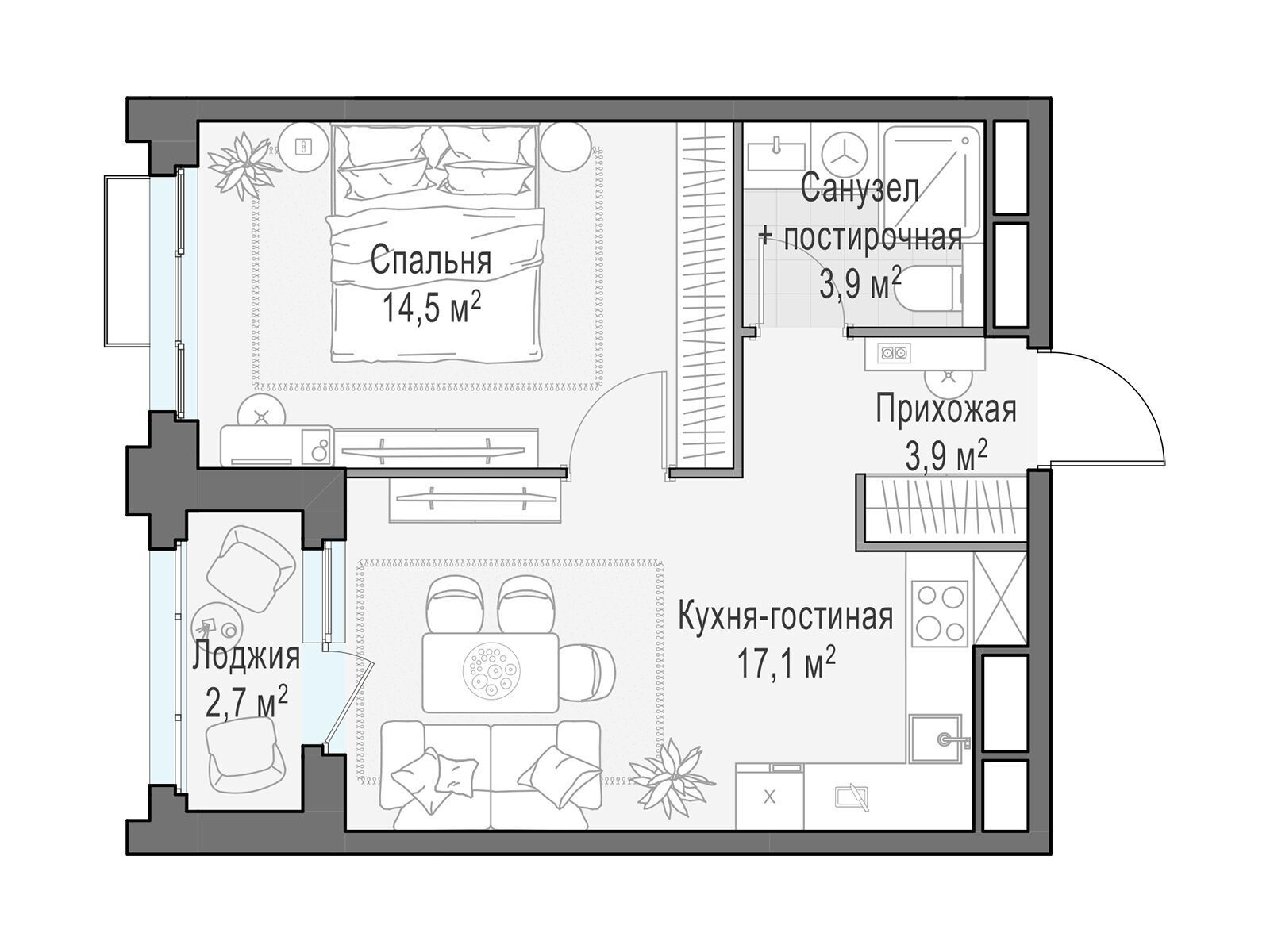 39.3 - 39.3 м²