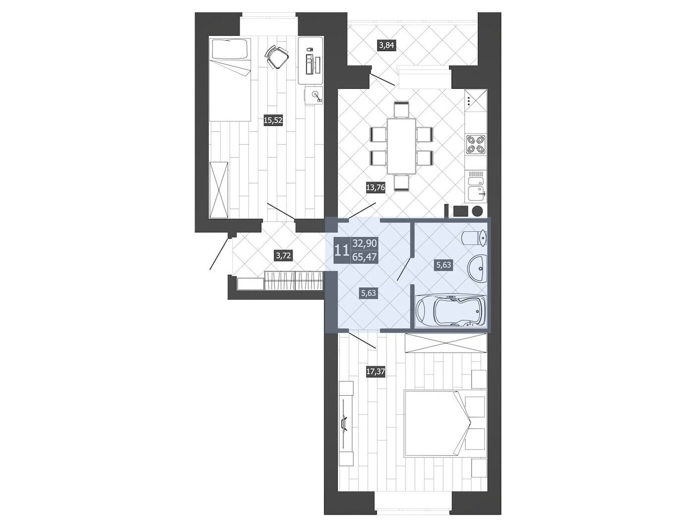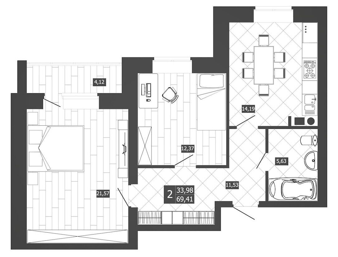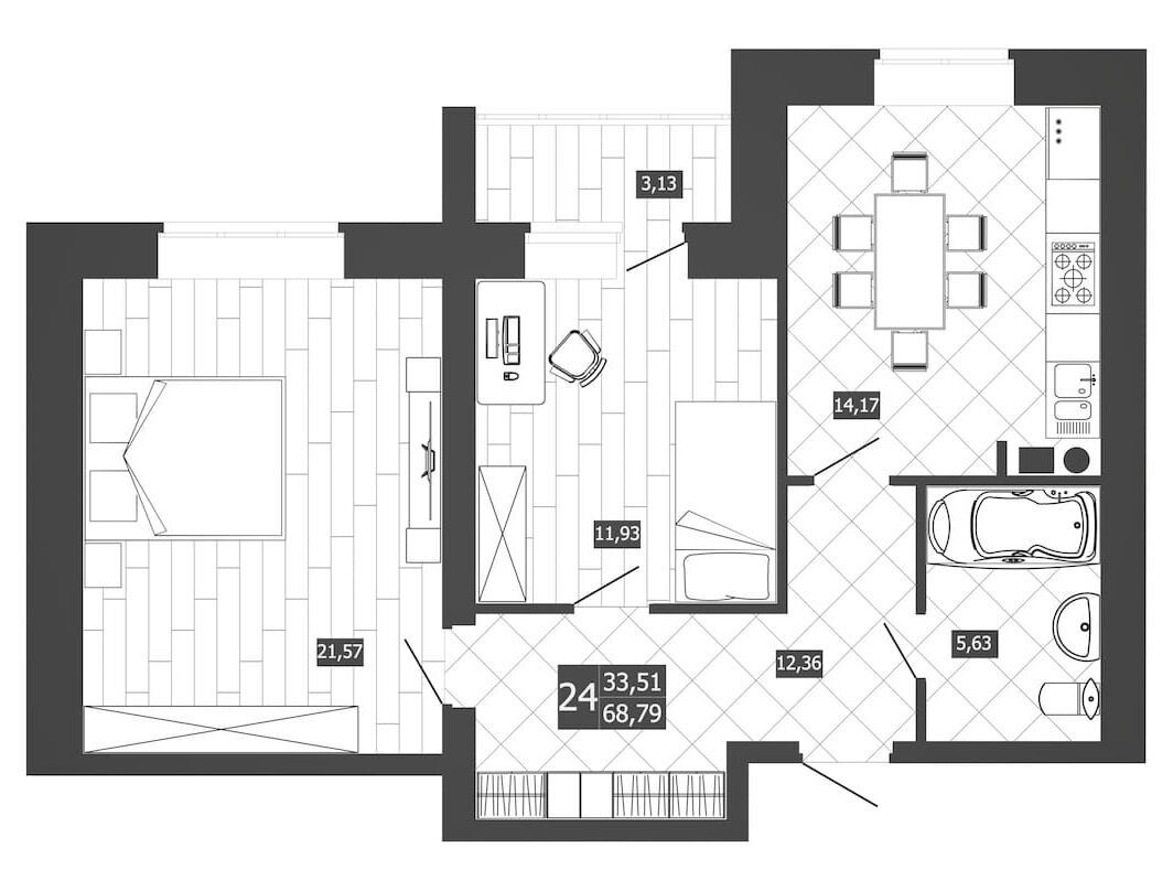 Квартиры укомплектованы лоджиями и увеличенными оконными проемами, позволяющими наслаждаться прекрасным видом и обеспечивающими изобилие света. Площадь жилья варьируется от 37.74 до 110.73 квадратных метров, а высота потолков достигает 2.7 метров, придающих простор и воздушность каждому помещению.