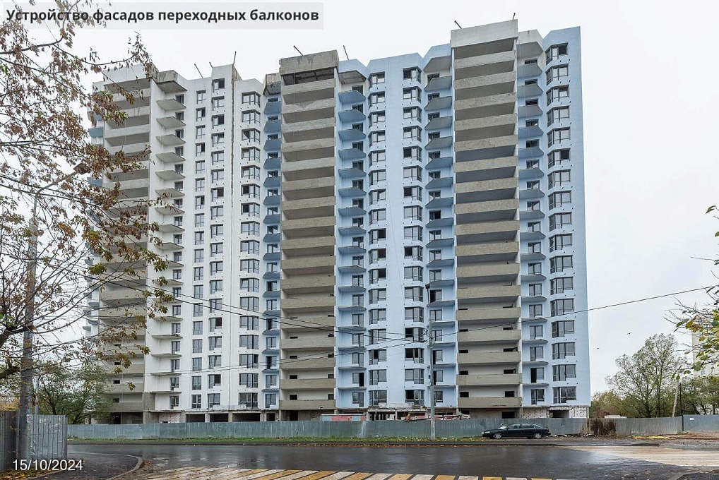 Комплекс состоит из семи корпусов разной этажности — от 3 до 19 этажей. Здания построены по монолитно-кирпичной технологии, что обеспечивает прочность, долговечность и хорошую шумоизоляцию. Фасады оформлены в спокойных светло-зелёных тонах с более светлыми акцентами на балконах. При отделке использованы стойкая штукатурка и навесные панели.