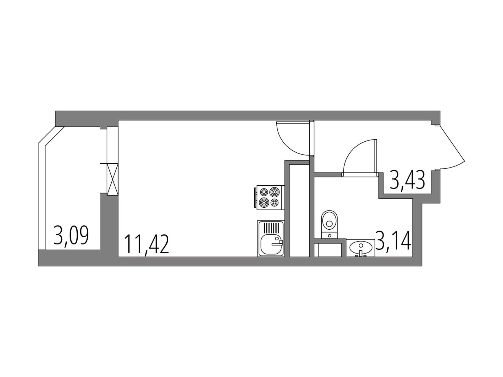 19.54 - 86.74 м²
