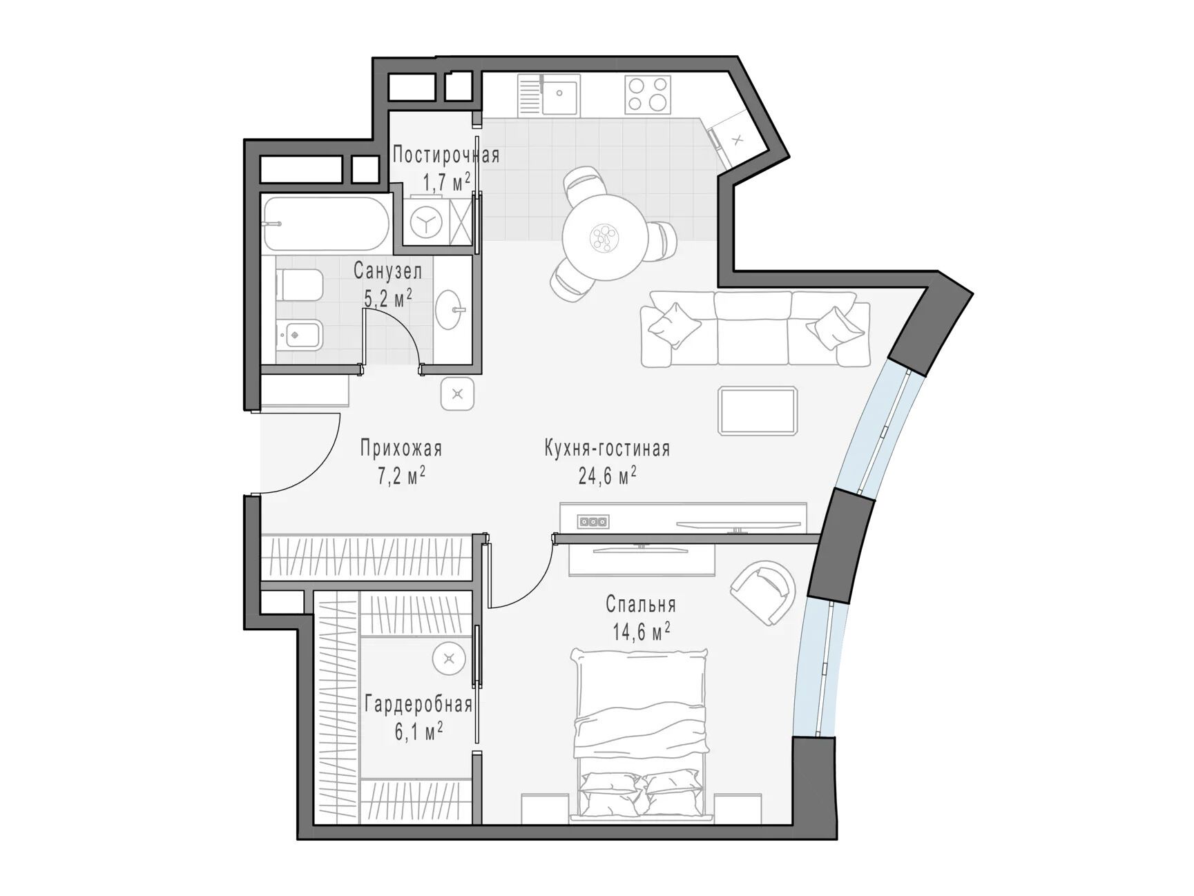 59.6 - 59.6 м²