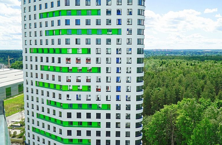 Этажность домов составляет 25 этажей, высота потолков — 2,8 метра. Закрытая территория комплекса обеспечивает безопасность жильцов, а двор без машин и подземная парковка делают проживание комфортным.