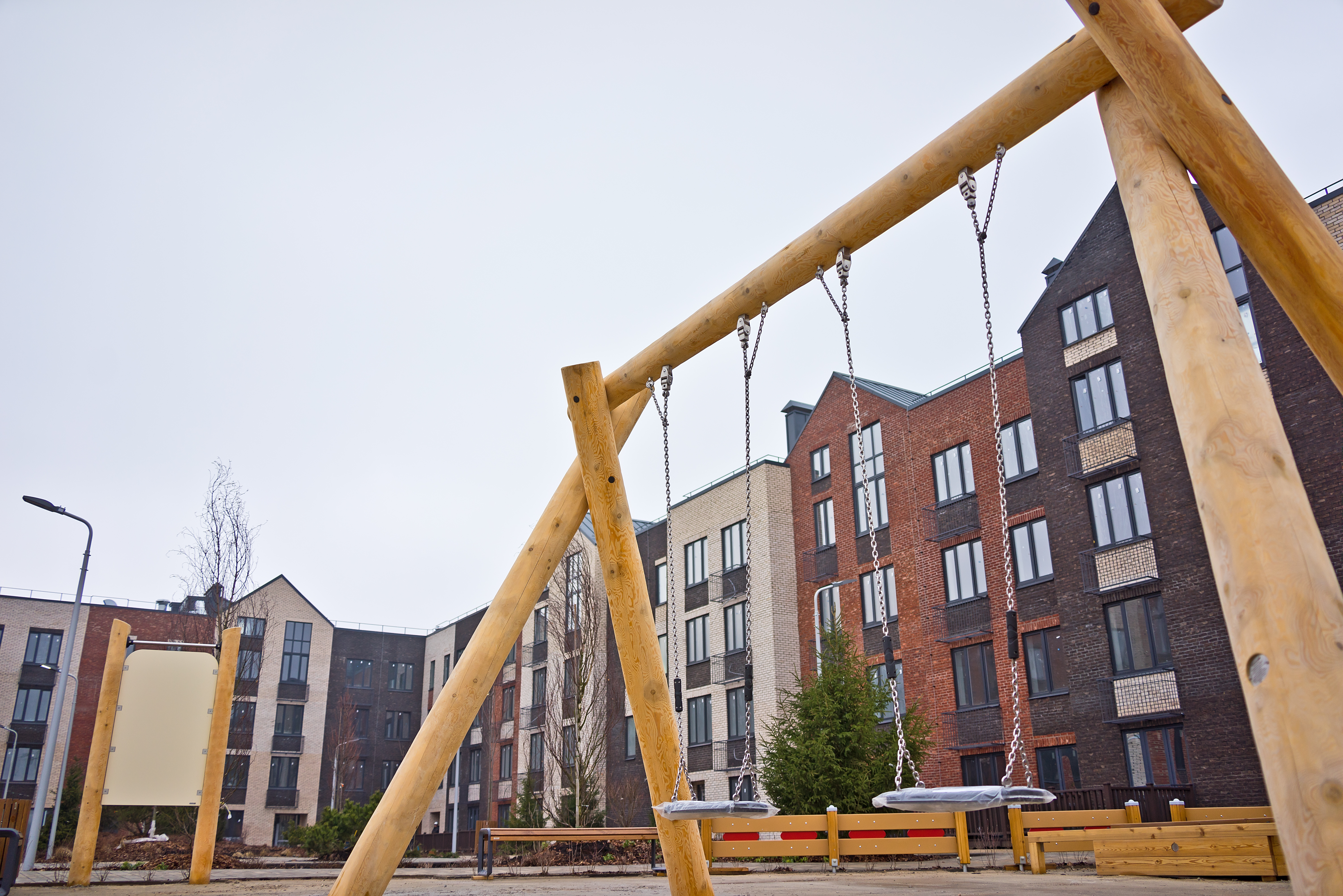 Красивый фасад и цветовая гамма у дома. Красивые окна, вид из окна тоже будет потрясным. Отличный вариант для тех, кто устал от городской суеты и хочет жить в тишине и спокойствии. Очень много зелени, парков, лесов. Неплохая транспортная развязка, для детей хорошая площадка. Здорово что есть много чего для детей, не нужно будет ехать куда-либо.