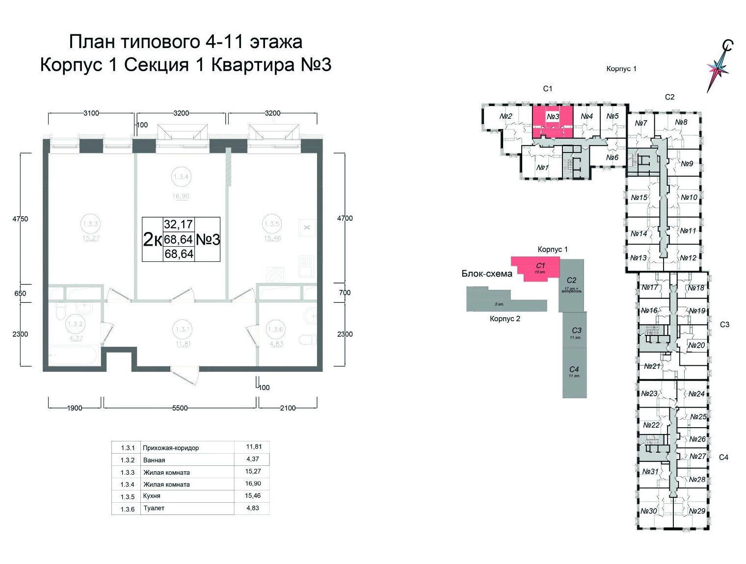 Комплекс относится к комфорт‑классу и включает два монолитных корпуса переменной этажности — от 11 до 17 этажей. Всего в проекте предусмотрено 390 квартир, а высота потолков варьируется от 2,72 до 5,75 м.
