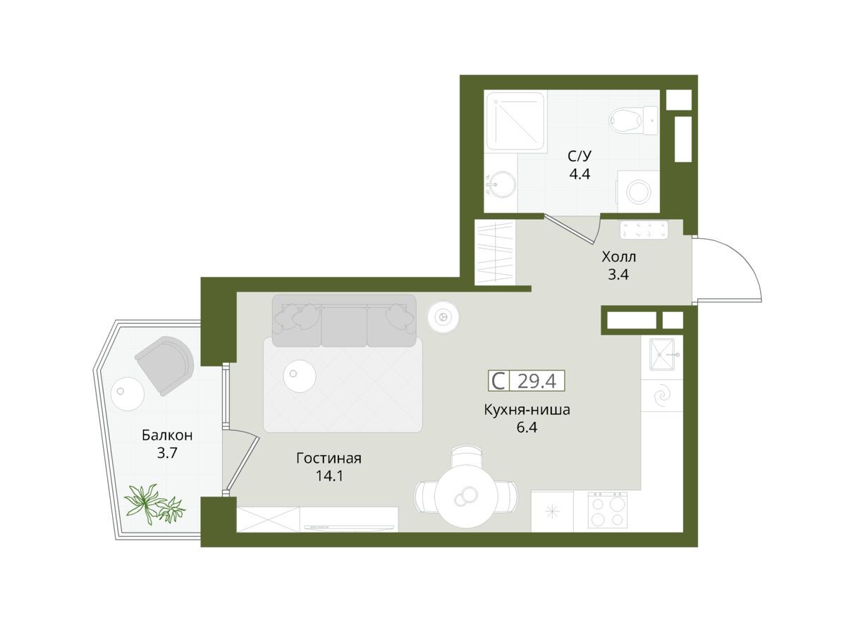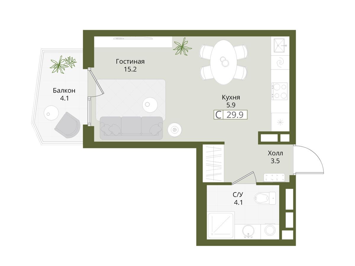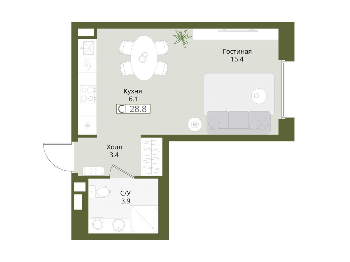 В ЖК представлено 1 660 квартир разных форматов — от студий до трёхкомнатных. Площадь студий начинается от 28,3 м², однокомнатных — от 30,2 м², двухкомнатных — от 47,8 м², трёхкомнатных — от 62,7 м². В квартирах предусмотрены разнообразные планировки: с балконами, мастер‑спальнями, гардеробными, двумя ванными комнатами и увеличенным количеством окон. Эксклюзивная особенность — лоты с террасами. Высота потолков составляет 3 м, а на верхних этажах — 3,3 м. Все квартиры сдаются с готовой отделкой; застройщик предлагает три варианта дизайна: «модерн» (тёплые оттенки с акцентами зелёного и дерева), «классика» (светло‑серые и белые тона с чёрными и серыми деталями) и «авангард» (сдержанный минимализм в светло‑серых и белых оттенках с чёрными и терракотовыми акцентами).