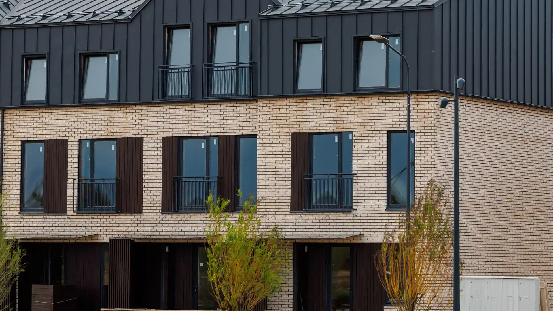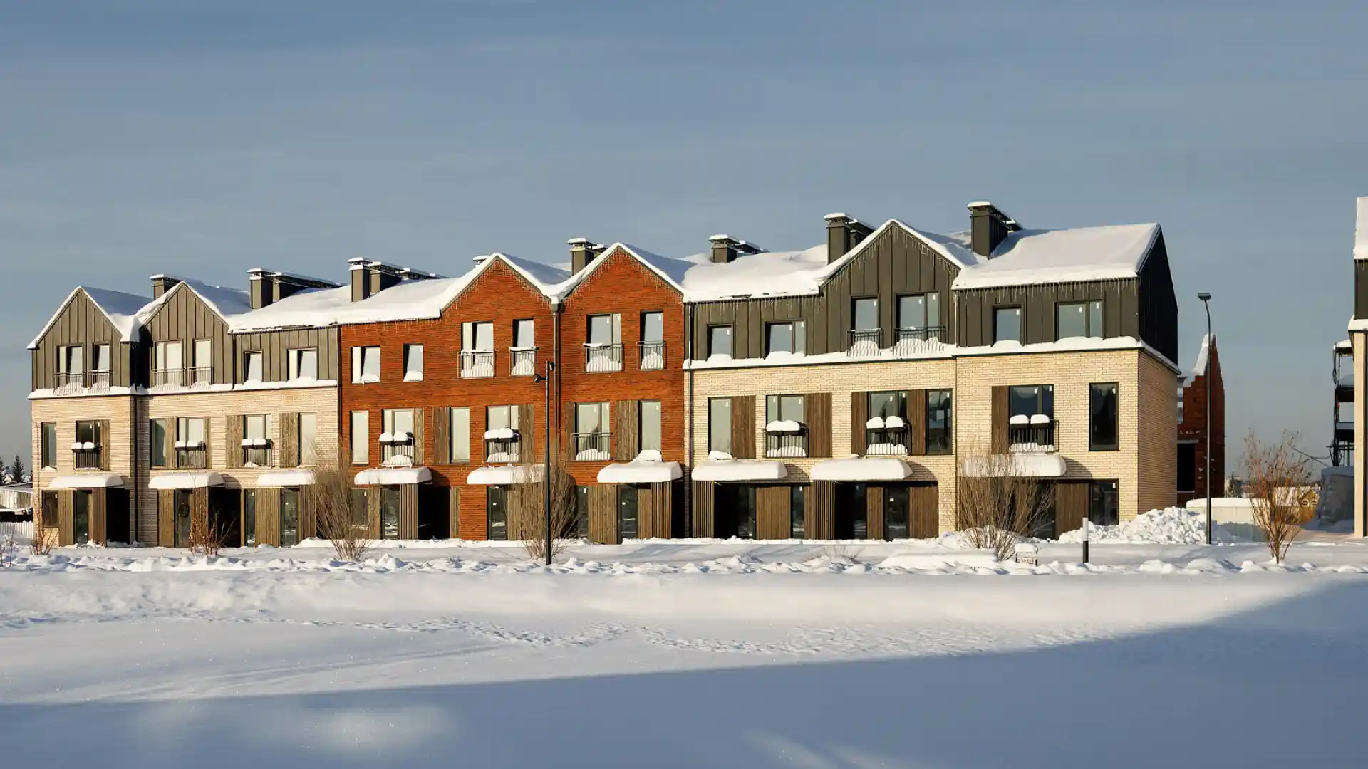 Таунхаусы будут иметь собственный земельный участок и парковочное место перед домом. Фасады выполнены в скандинавском стиле с применением натуральных материалов: кирпича, фальца и дерева. Проектом предусмотрены специальные места для установки кондиционеров и система фасадного освещения.