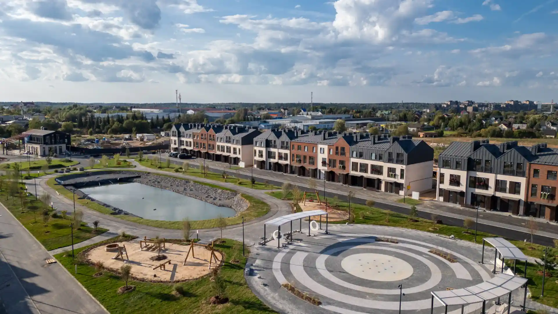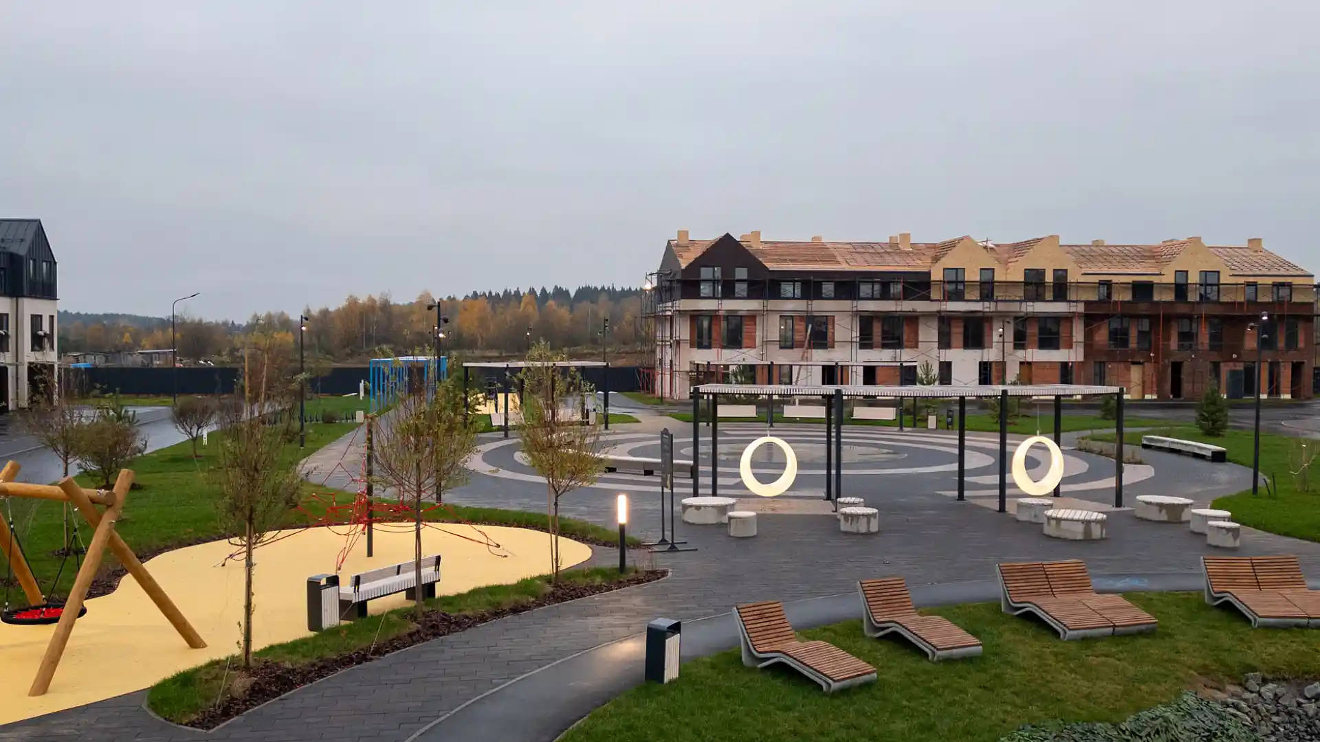 На территории 32,4 га появится 106 трёхэтажных таунхаусов в скандинавском стиле и 2 многоквартирных малоэтажных дома. Архитектурную концепцию таунхаусов разработало бюро «Архикредо», многоквартирных домов — бюро «МС Архитектс».