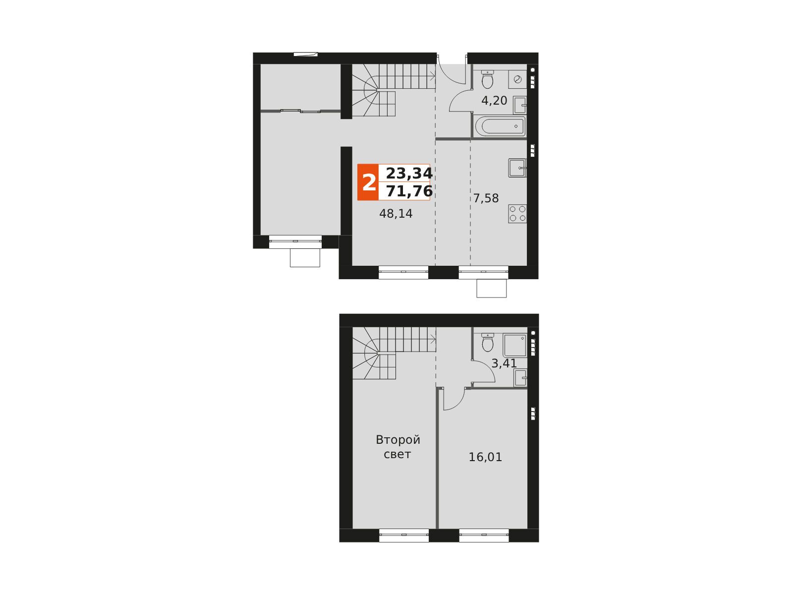 В таунхаусах запроектировано несколько типов планировок: торцевые площадью от 133,6 м² и линейные от 125,47 м². Во всех будет по 4 комнаты с кухней-гостиной, гардеробной и несколькими санузлами. Таунхаусы реализуются без внутренней отделки, но покупателям доступны опции предчистовой или полной чистовой отделки. Предлагаются три варианта отделки: черновая, формат «white box» и готовый ремонт в стиле Japandi.