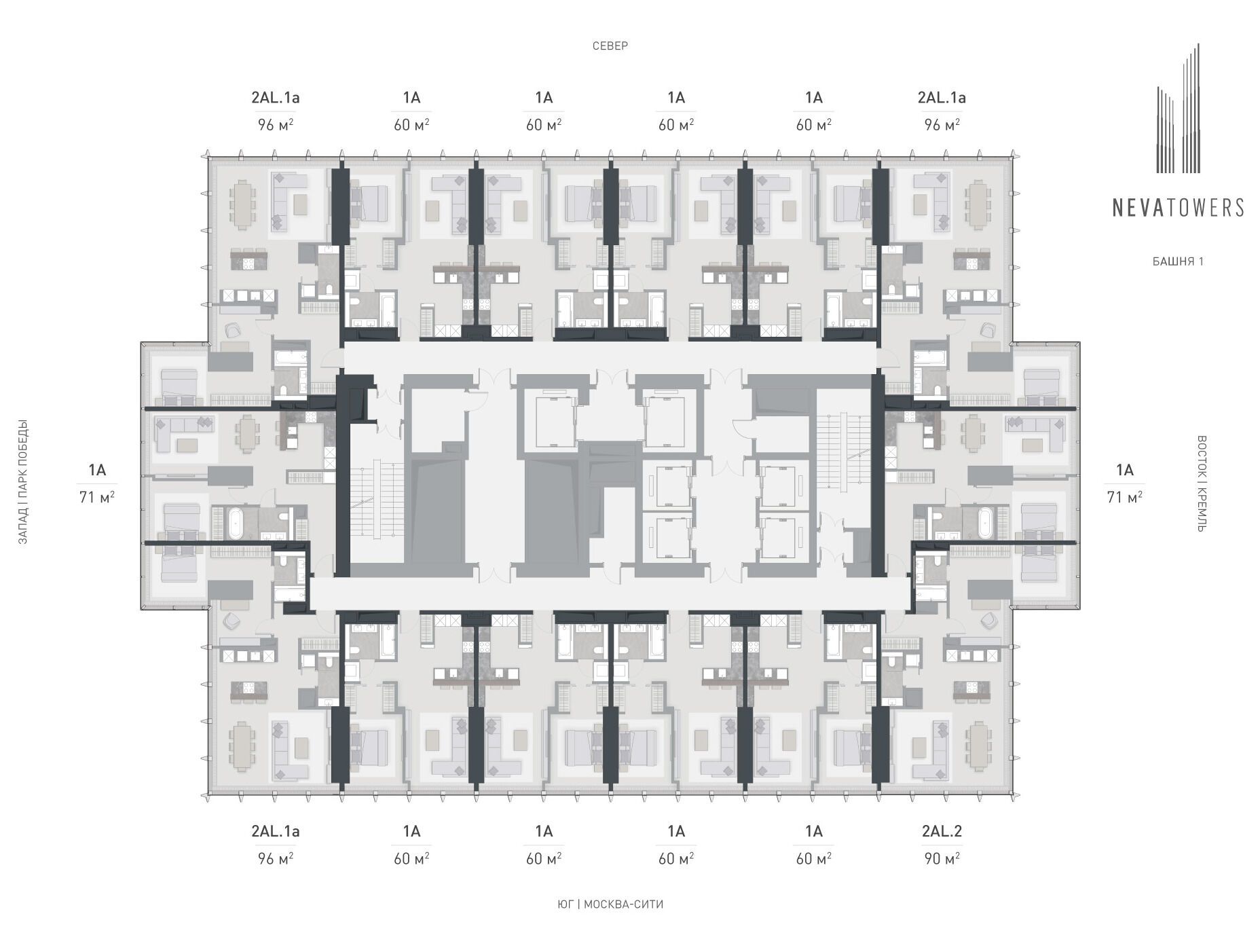 Жилой комплекс «Neva Towers» представляет собой великолепный комплекс премиум-класса, расположенный на Пресненской набережной и возвышающийся над столичным городом двумя изысканными башнями высотой 68 и 78 этажей. Обе башни соединены единым 4-х этажным стилобатом, создавая гармоничный архитектурный ансамбль.