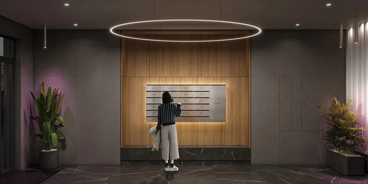 В лобби каждой секции будет выполнен дизайнерский ремонт и обустроены помещения для хранения детских колясок и велосипедов. Входные группы будут сквозными, со стеклянными дверьми, без порогов и пандусов.