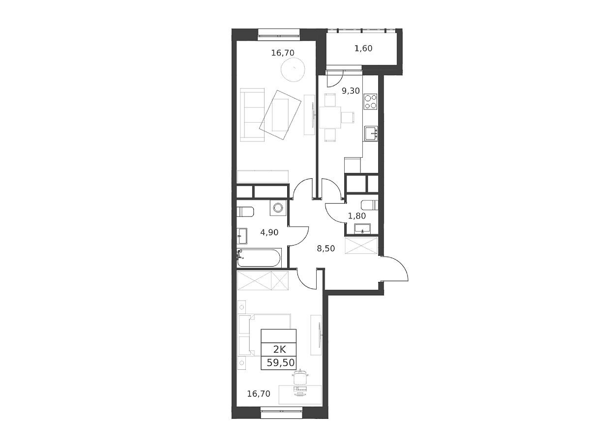 Комплекс состоит из двух 16‑этажных монолитных секций, облицованных кирпичом, керамическими камнями, блоками и другими мелкоштучными каменными материалами бежевого, жёлтого и светло‑коричневого тонов. Всего в доме запроектировано 180 квартир: от 30‑метровых студий до трёхкомнатных площадью 77,3 м². Высота потолков составляет 3–3,5 м. В многокомнатных лотах предусмотрено два санузла, а балконы с видом на собственный двор есть даже в студиях.