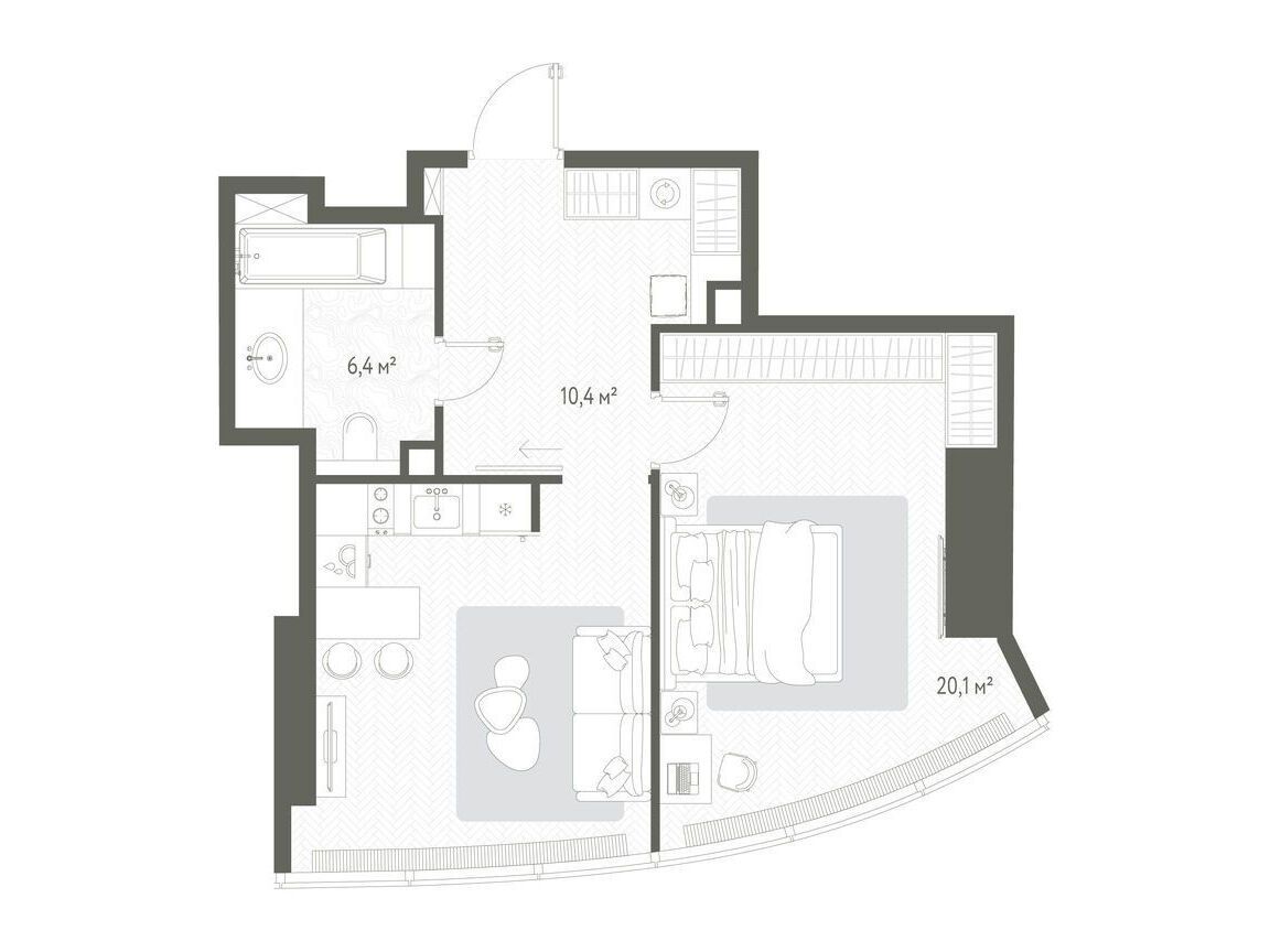 В комплексе представлено 1 417 резиденций — от компактных студий площадью от 32,7 м² до эксклюзивных двухуровневых пентхаусов. Высота потолков варьируется от 3 до 4,5 метров, что создаёт ощущение воздушности и визуально расширяет пространство. Все апартаменты отличаются панорамным остеклением от пола до потолка, открывающим виды на центр столицы, Москву‑реку и сталинские высотки. Планировочные решения разработаны бюро Олега Клодта: предусмотрены эргономичные кухни‑гостиные, продуманные гардеробные системы и выделенные прачечные зоны. Покупатели могут выбрать один из двух вариантов отделки — White Box для свободного планирования интерьера или готовое решение MR Ready на верхних этажах.