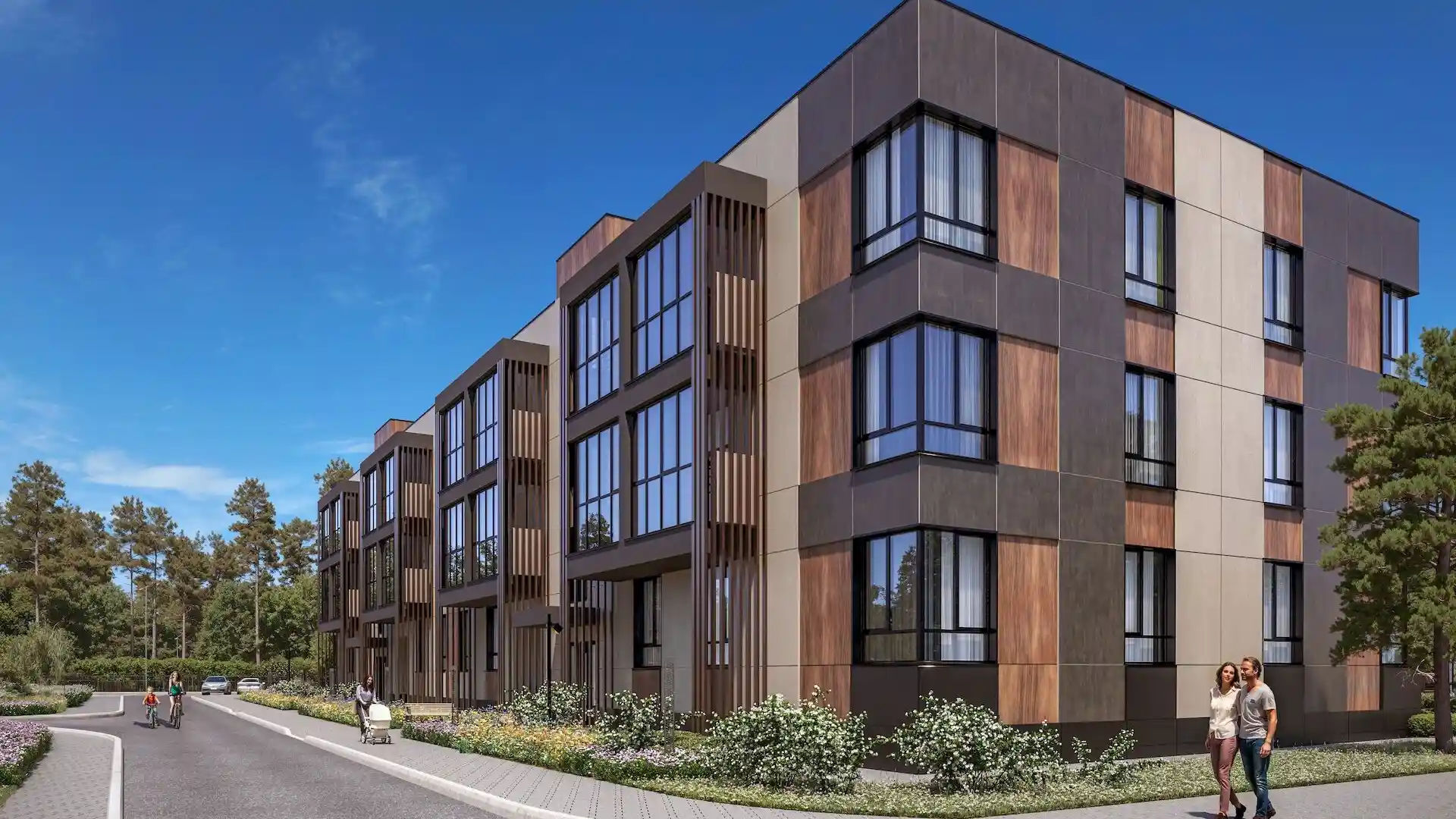 Комплекс относится к классу бизнес и состоит из семи корпусов, каждый из которых имеет три этажа. Дома строятся по монолитно-кирпичной технологии, что обеспечивает надежность и долговечность. Высота потолков в квартирах составляет от 3,25 до 3,40 метра. В квартирах доступны варианты отделки без отделки и предчистовой.