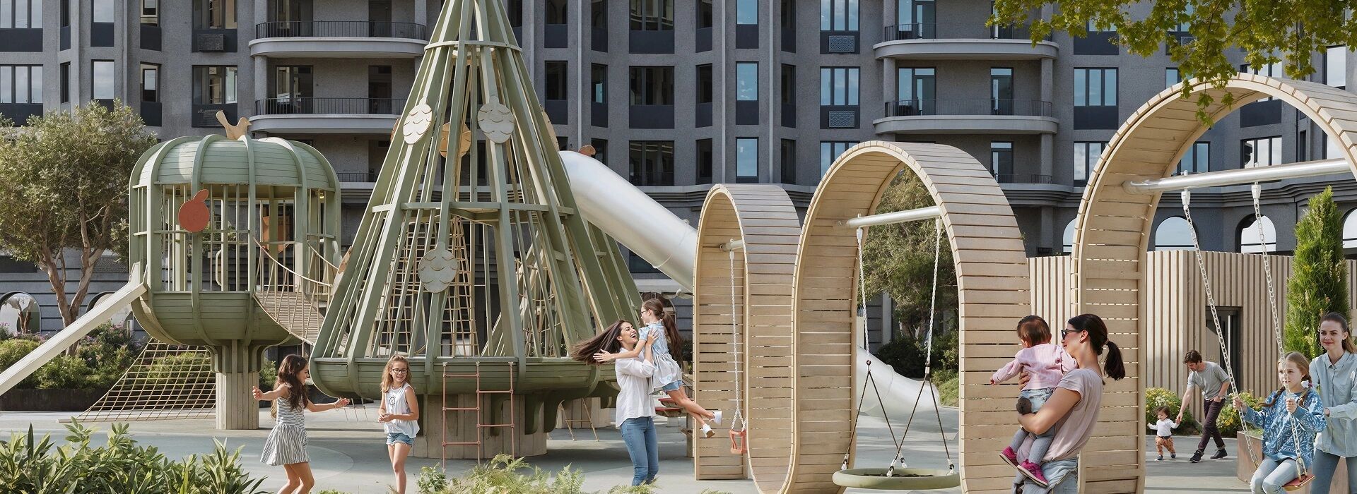 Благоустройство территории выполнено с учётом потребностей разных возрастных групп: