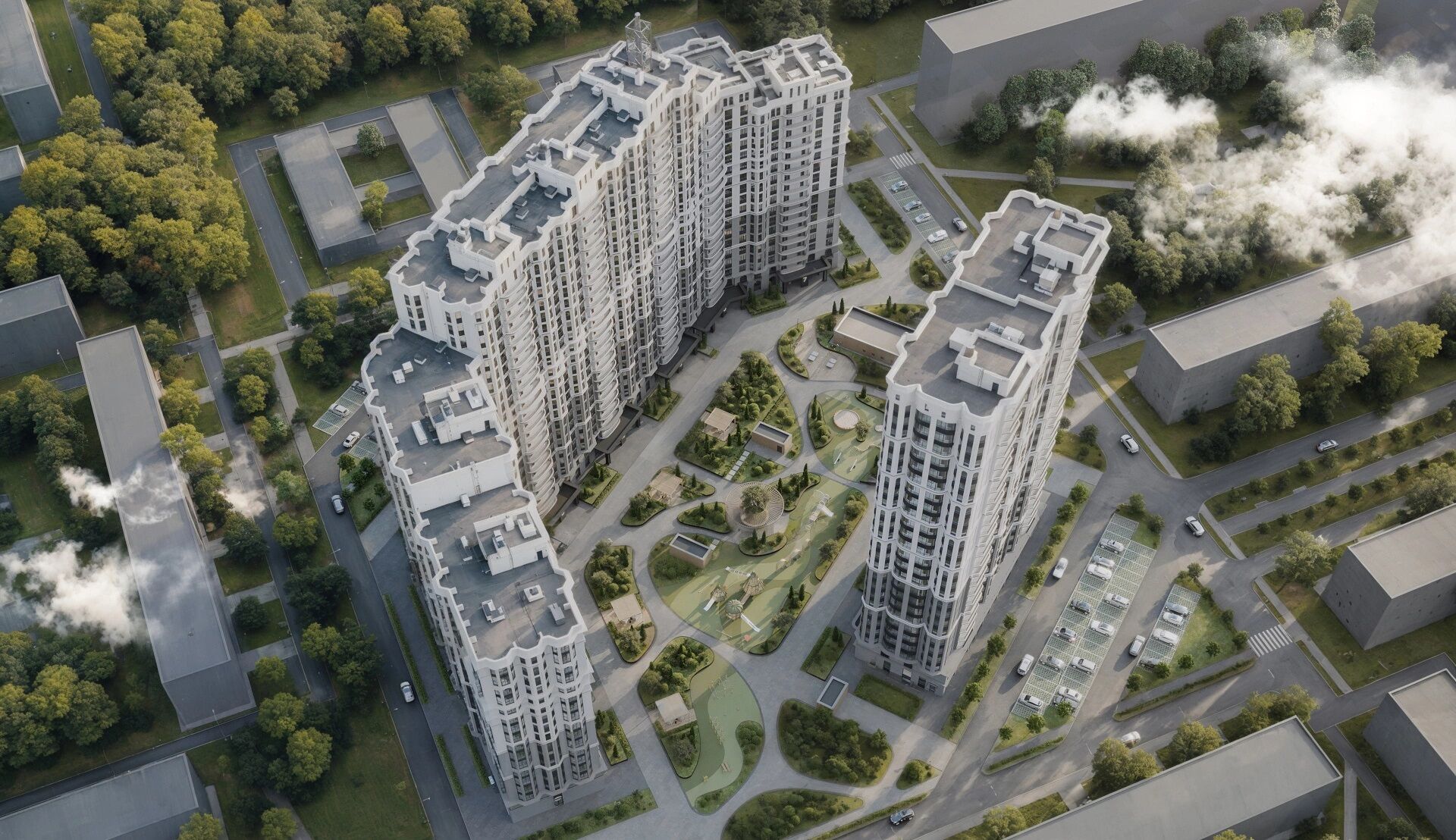 Парковочная инфраструктура включает как открытый, так и подземный паркинг — такое решение позволяет оптимально распределить транспортные потоки, освободить дворовую территорию от автомобилей и обеспечить жителям выбор в зависимости от личных предпочтений.