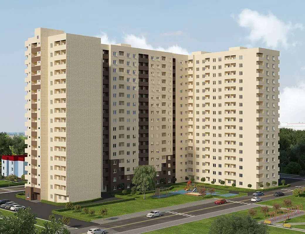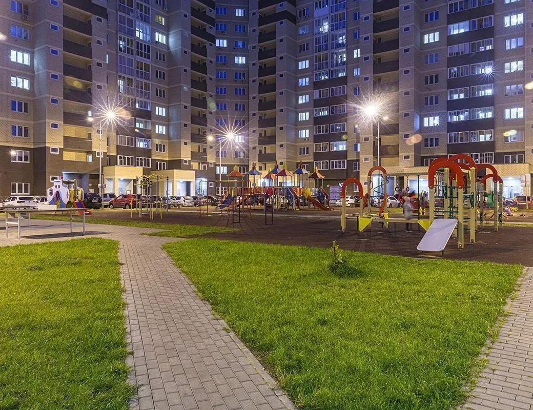Территория комплекса благоустроена: здесь размещена детская площадка с развивающими конструкциями, высажены газон и лиственные деревья. Для автовладельцев предусмотрена гостевая парковка на 25 машино‑мест.
