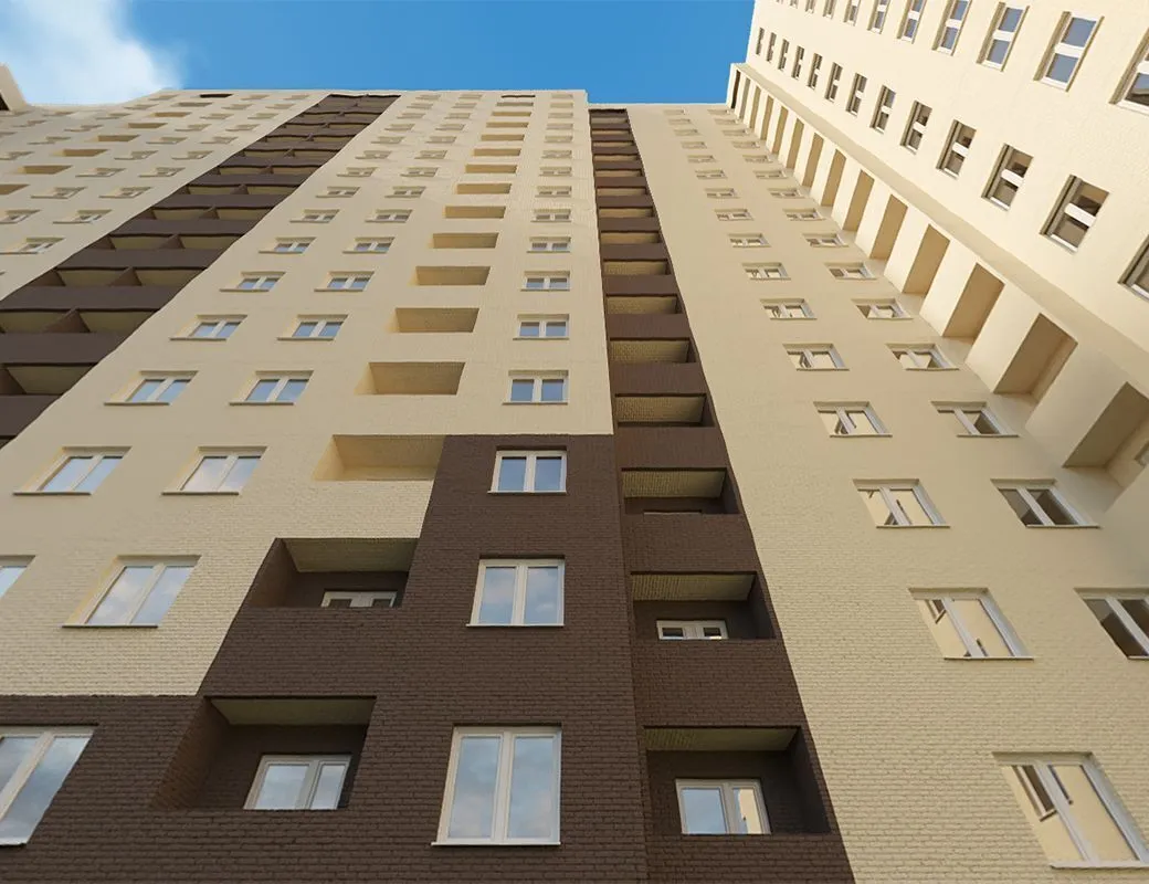 Архитектурное решение выполнено в стиле постфункционализм. Кирпичный фасад не только формирует выразительный облик здания, но и обеспечивает качественную тепло‑ и звукоизоляцию. Подъезды оборудованы лестницами и пандусами, лестничные проёмы оснащены перилами и безопасными проходами, что повышает удобство и безопасность перемещения жильцов.