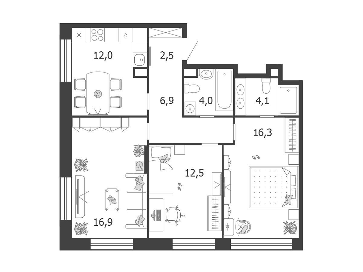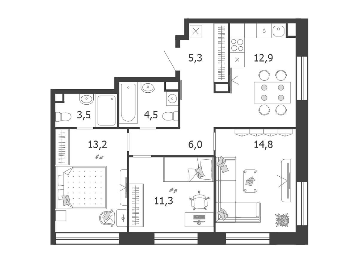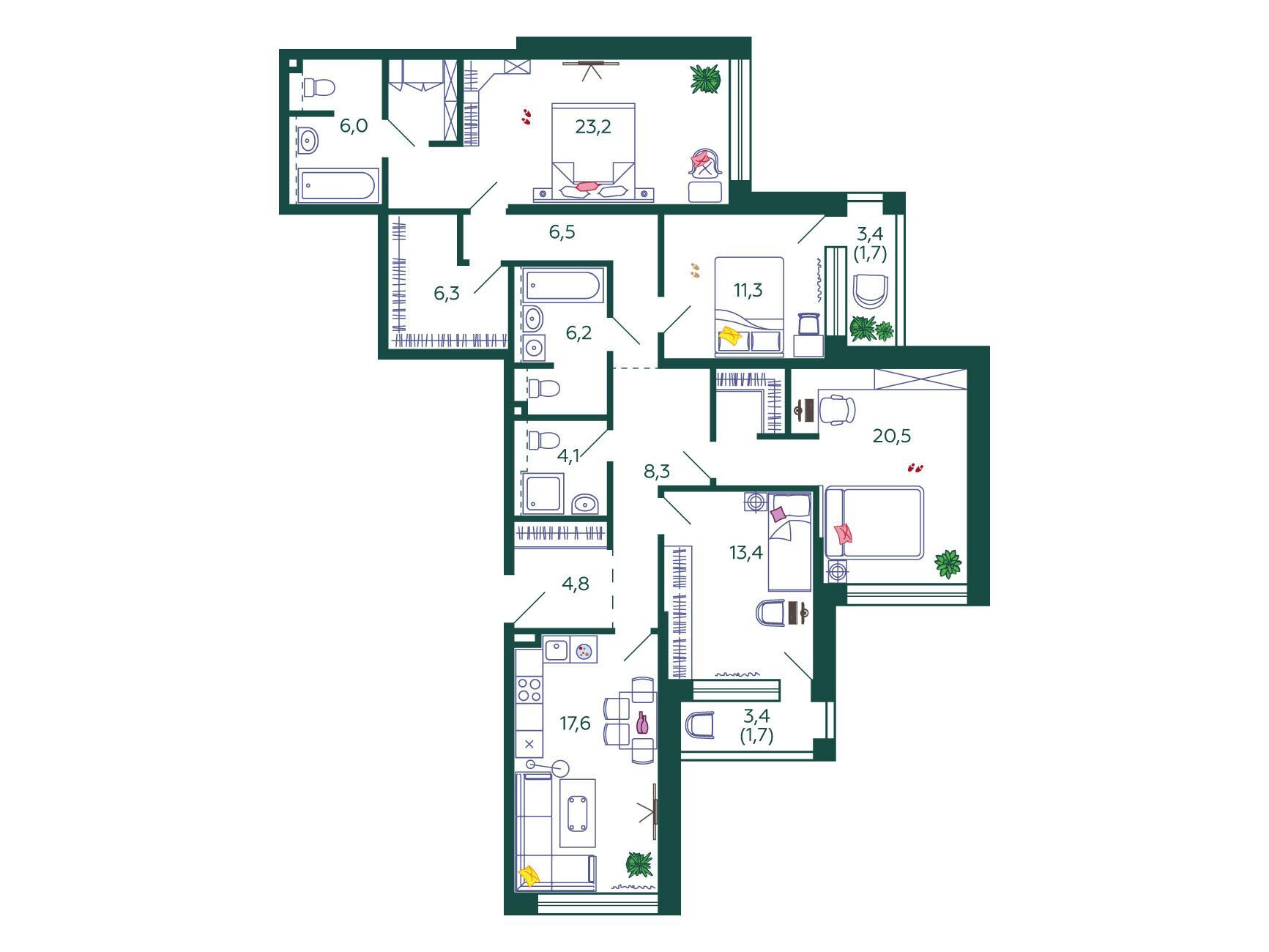 В ЖК «Шагал» можно купить квартиру для любого состава семьи. Есть варианты с одной или несколькими мастер-спальнями, индивидуальными и общими гардеробными, несколькими санузлами, постирочными, просторными кухнями-гостиными. Также можно подобрать двухуровневый юнит.