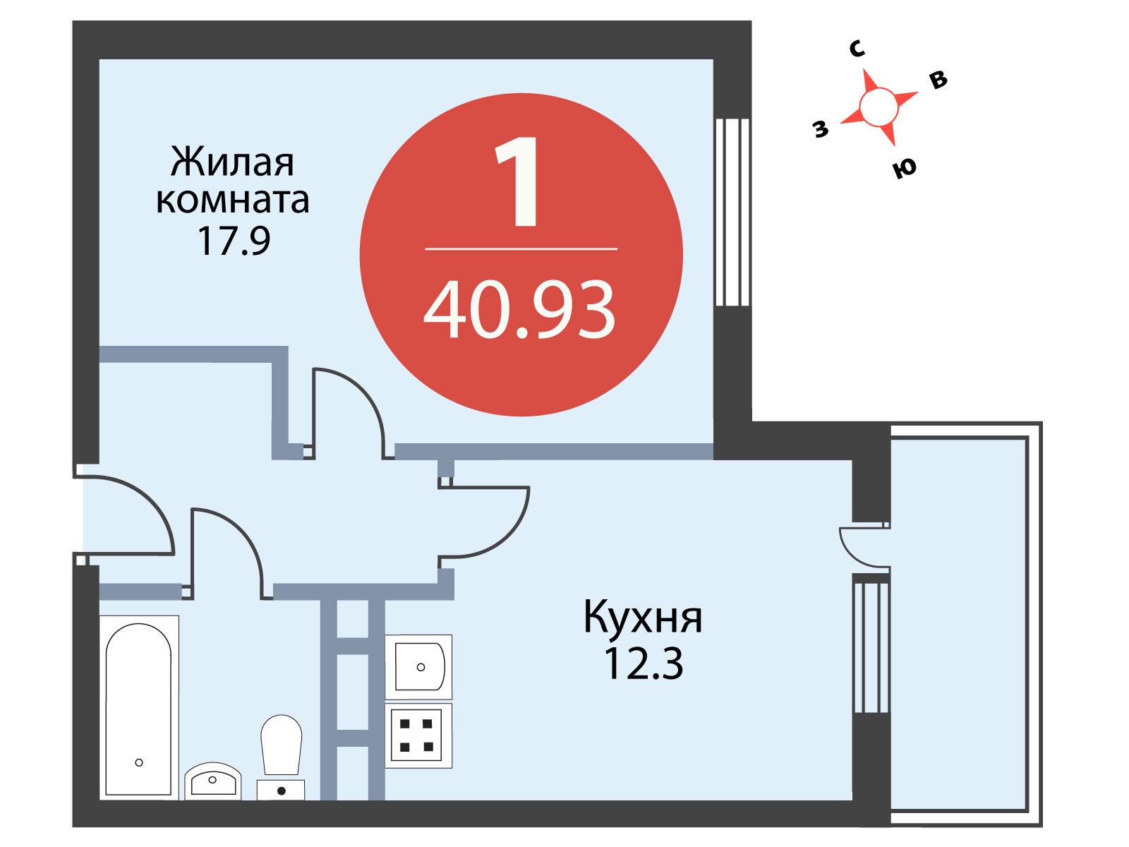 Жилой фонд проекта включает в себя варианты от 29-метровых студий до трехкомнатных квартир площадью 79,9 кв. метров. Встречаются угловые и распашные планировки, в каждой — предусмотрен остекленный балкон.