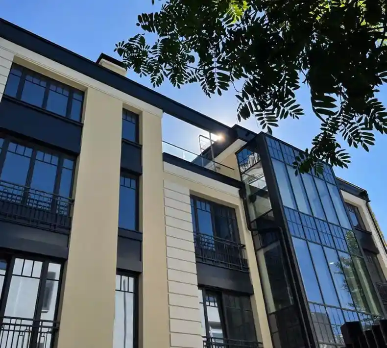 В доме всего четыре резиденции, что создаёт атмосферу камерности и приватности. Это две квартиры с 1–2 спальнями площадью 83 и 117 м² и две двухуровневые квартиры со вторым светом и открытыми террасами площадью 126 и 153 м². Высота потолков в резиденциях — от 3,3 м, на третьем этаже — до 5,9 м. В квартирах большое количество окон, в том числе мансардных, что обеспечивает хорошее естественное освещение. Окна, выходящие на тихую улицу, поддерживают атмосферу приватности, а окна во внутренний двор спроектированы в пол.