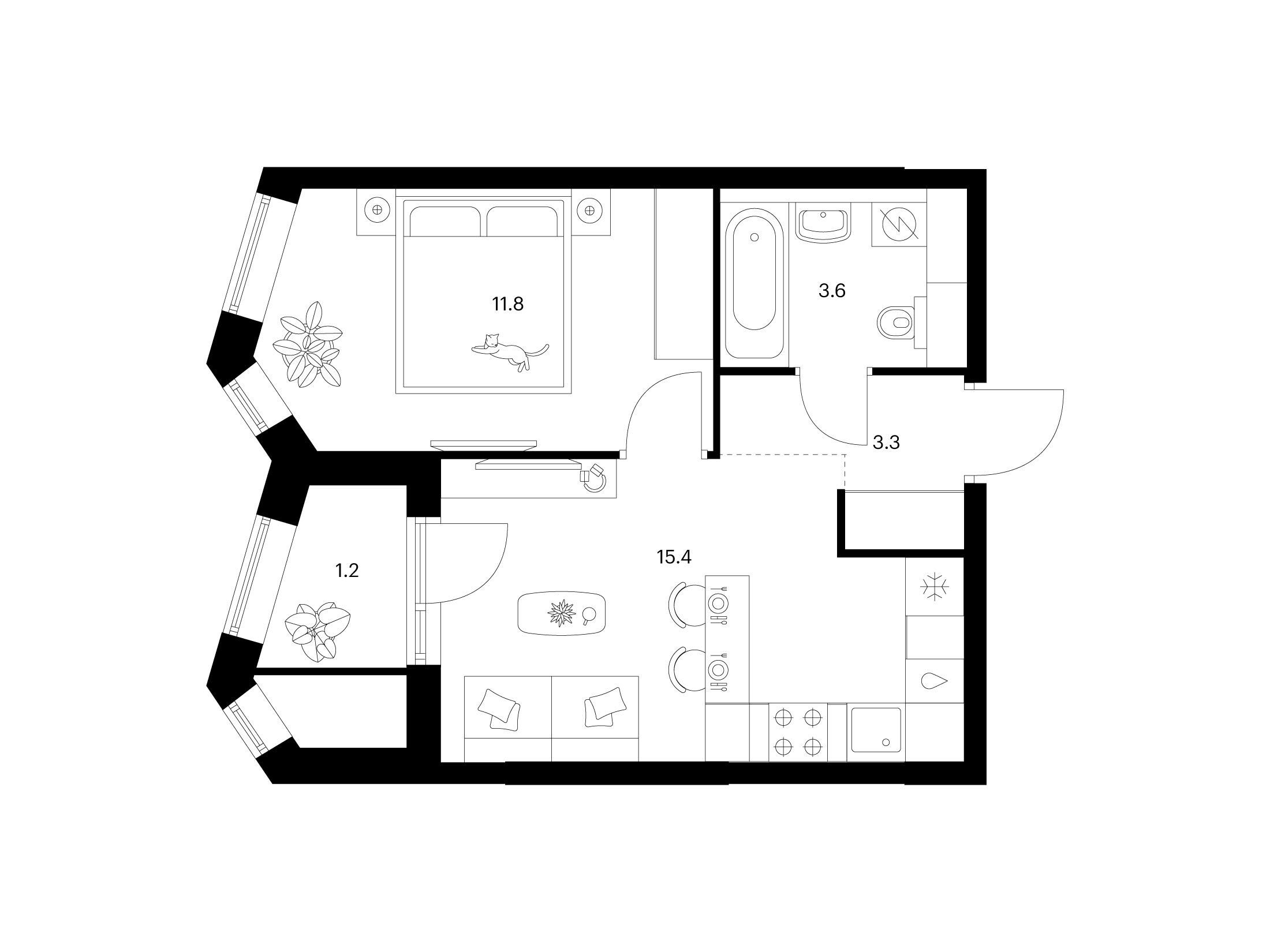 1-комнатная квартира, 36.20 м², 2 из 23 эт.