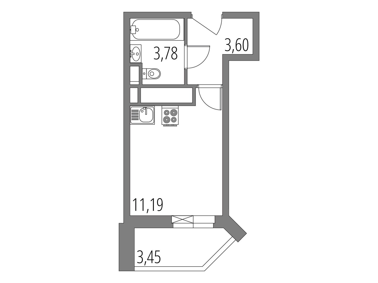 Студия, 26.54 м²