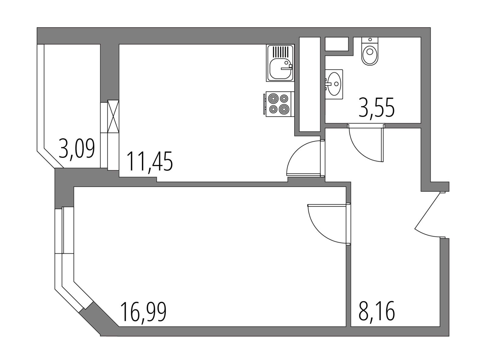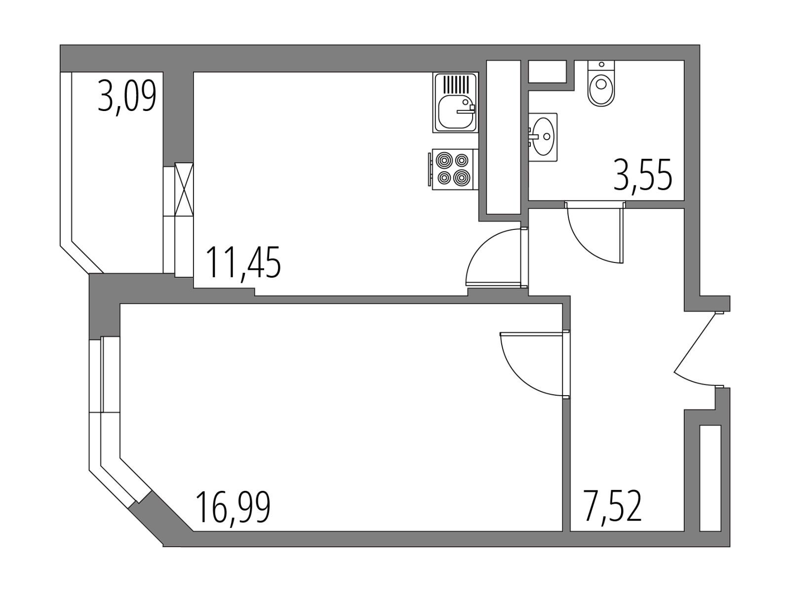 1-комнатная квартира, 39.94 м², 5 из 18 эт.